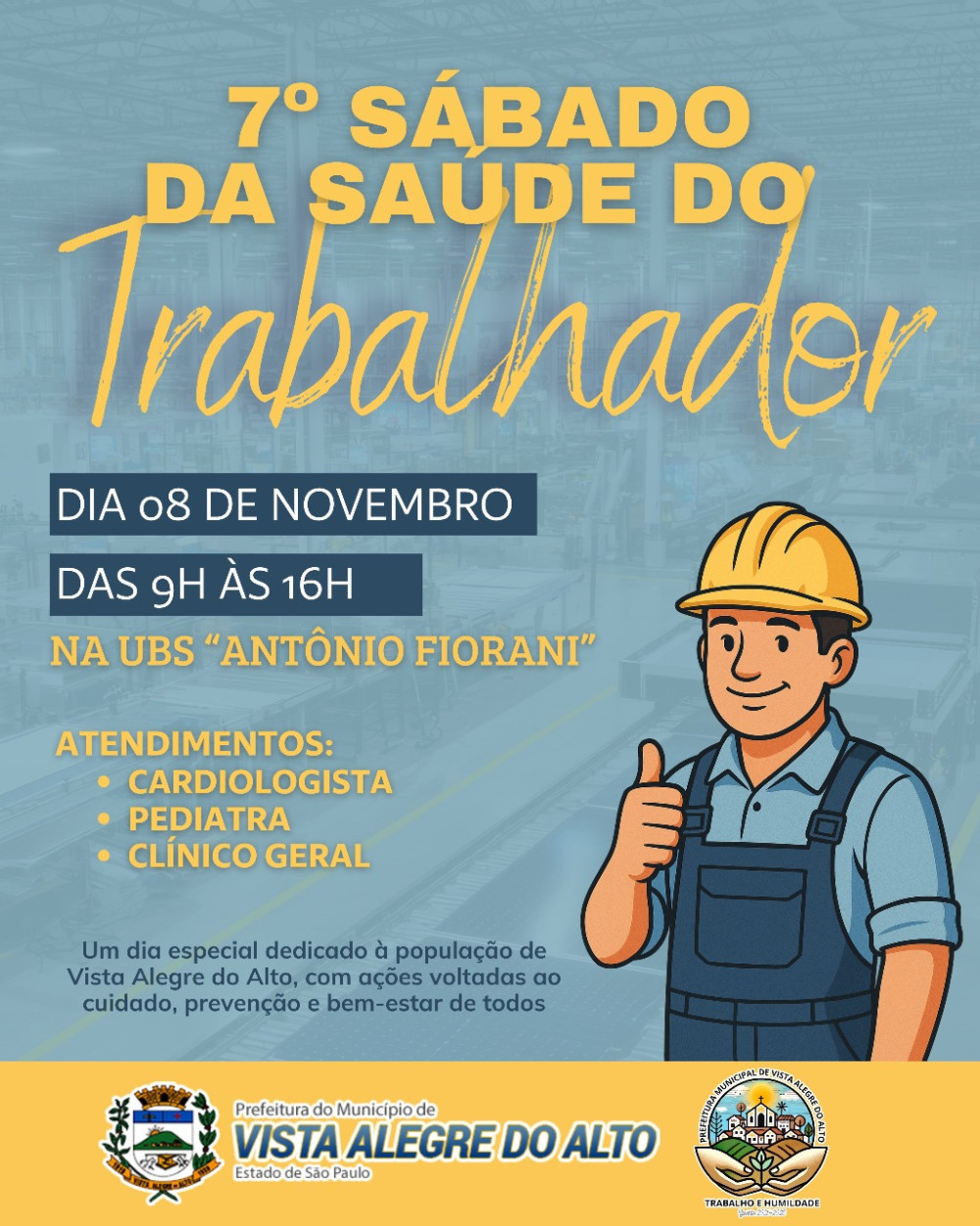 06/11/2025 - Prefeitura convida para o 7º Sábado da Saúde do Trabalhador.