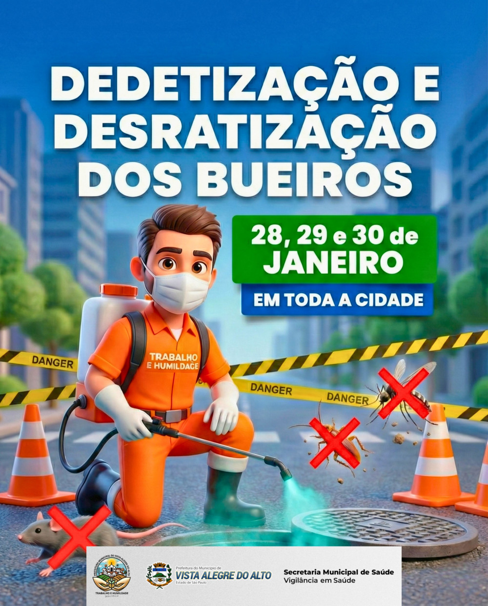 14/01/2026 - Dedetização dos prédios públicos ocorre nos dias 15 e 16 de janeiro em Vista Alegre do Alto.