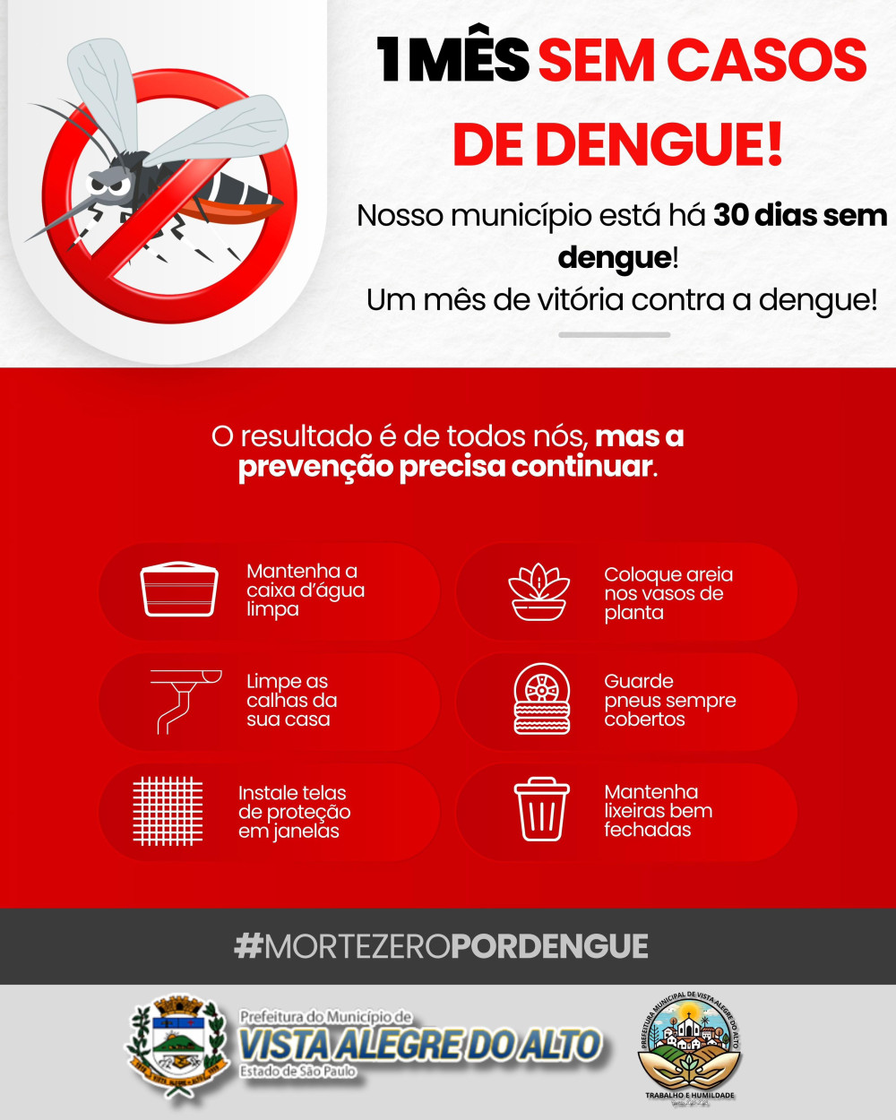 Nosso município acaba de alcançar uma conquista importante: estamos há 30 dias sem registros de dengue.