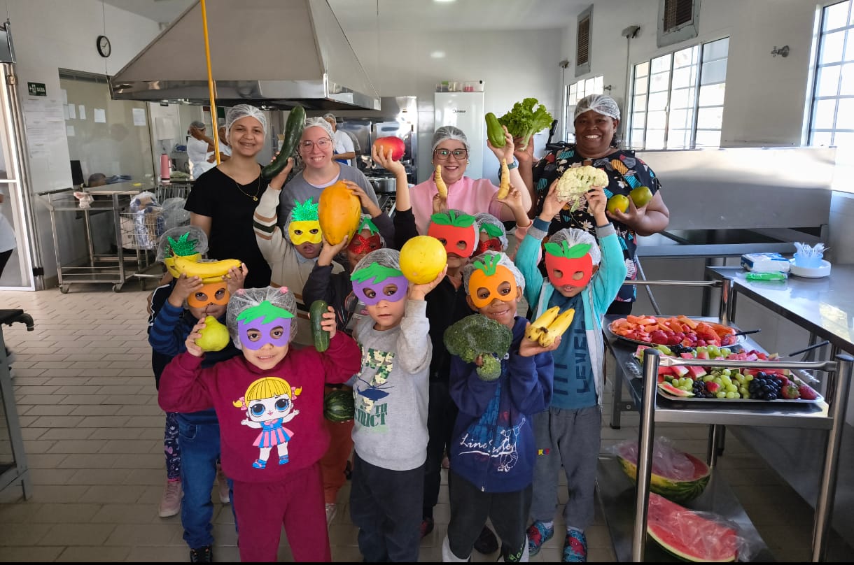 Durante a visita, as crianças conheceram o espaço onde as refeições são preparadas e puderam explorar uma grande variedade de frutas e verduras, observando, tocando e aprendendo sobre cada uma delas. No final, participaram de um momento de degustação, tornando o aprendizado ainda mais divertido e saboroso.