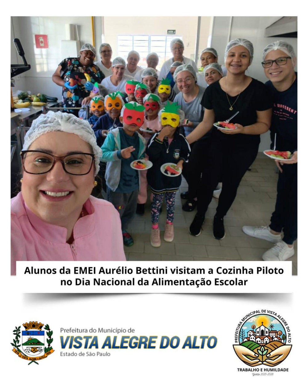Continuando as comemorações do Dia Mundial da Alimentação e comemorando hoje o Dia Nacional da Alimentação Escolar, os alunos do Jardim da EMEI “Aurélio Bettini” participaram, nesta terça-feira, de uma visita muito especial à Cozinha Piloto de Vista Alegre do Alto.
