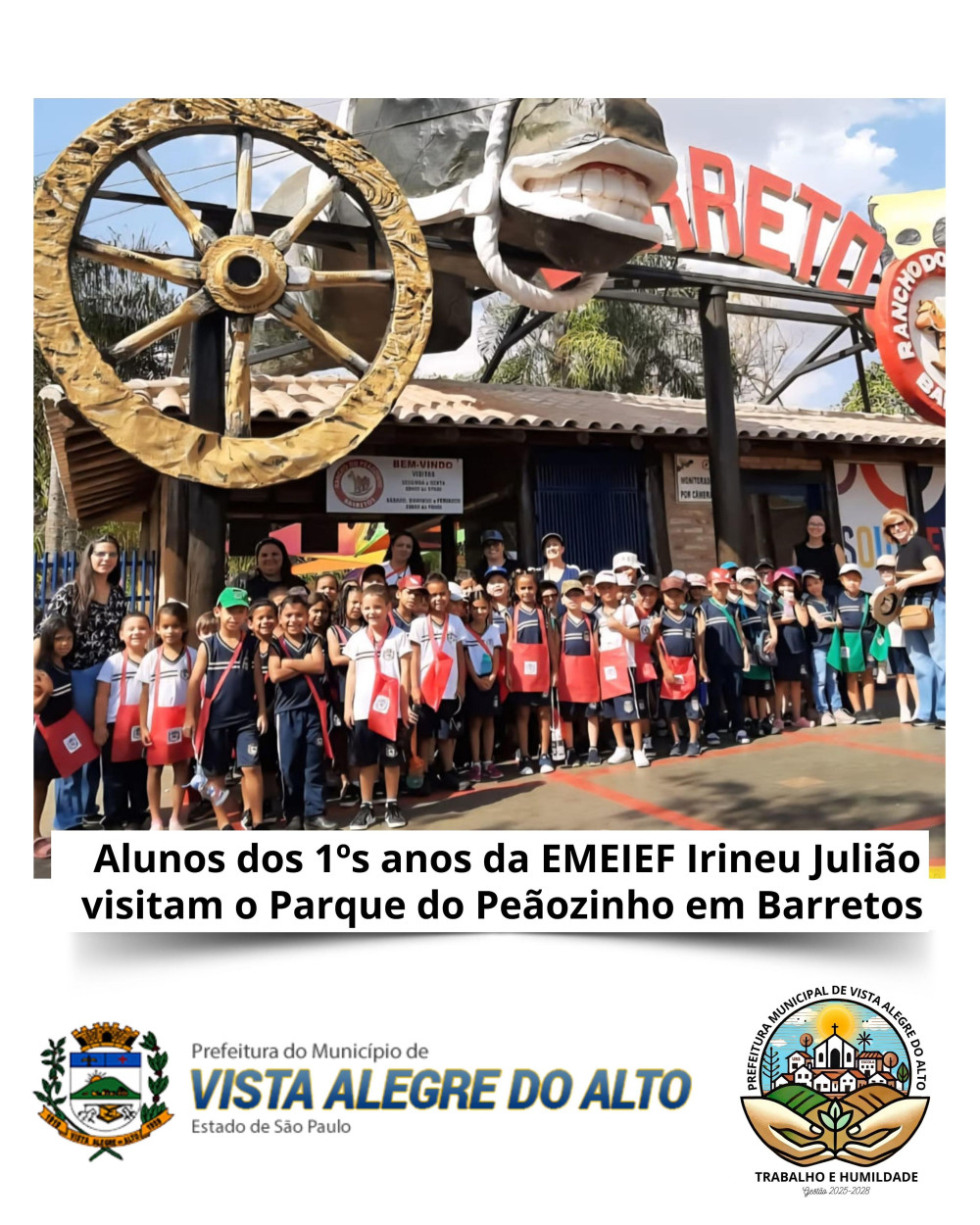 A Prefeitura de Vista Alegre do Alto, por meio da Secretaria de Educação, proporcionou aos alunos dos 1ºs anos da EMEIEF Irineu Julião uma visita especial ao Parque do Peãozinho, em Barretos, nos dias 27 e 28 de agosto.