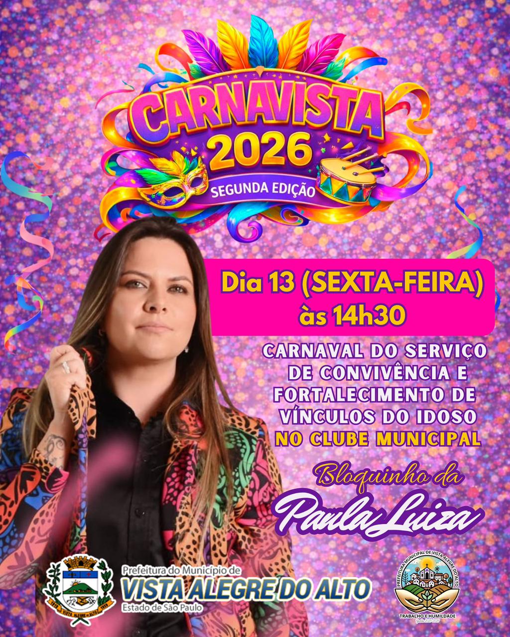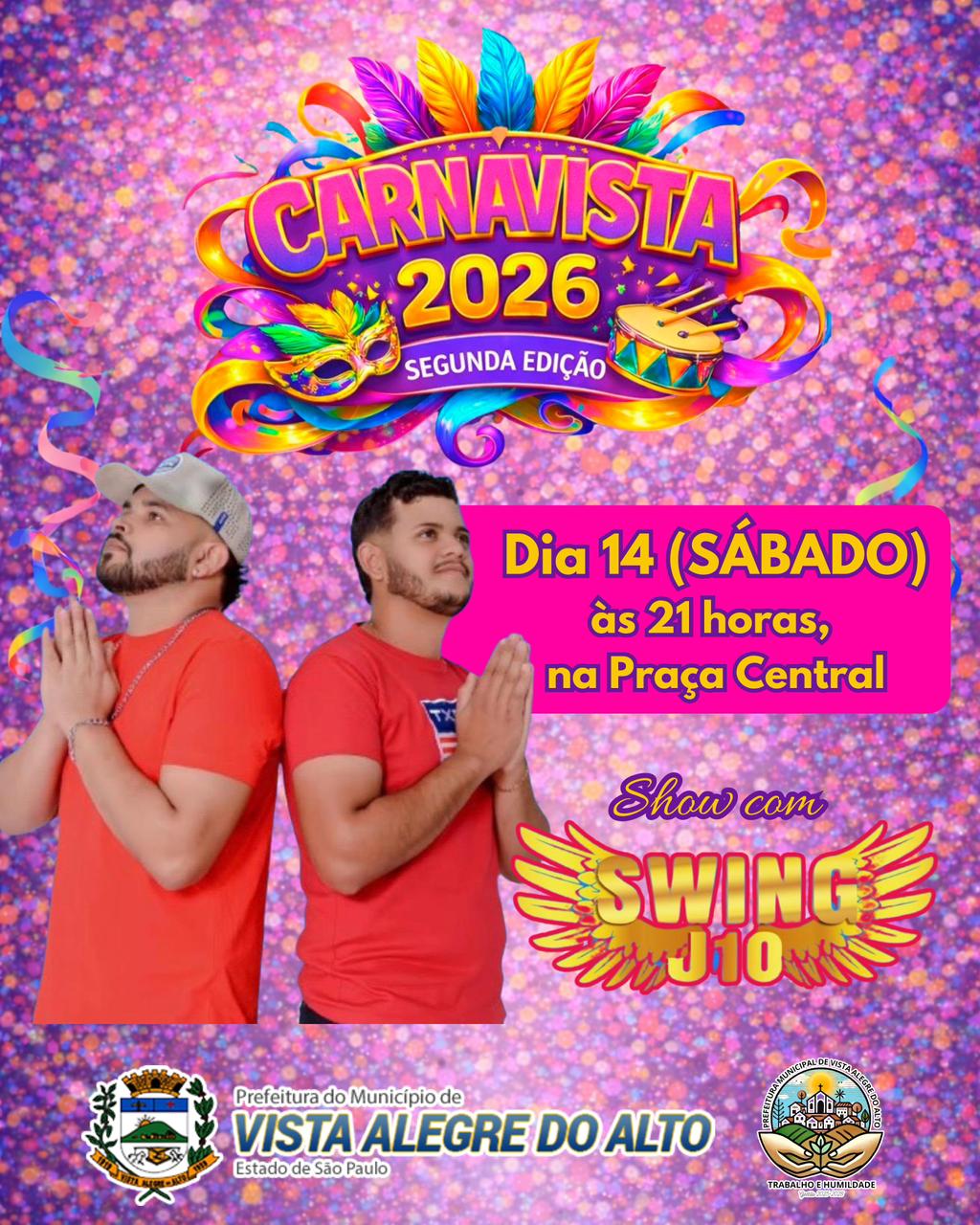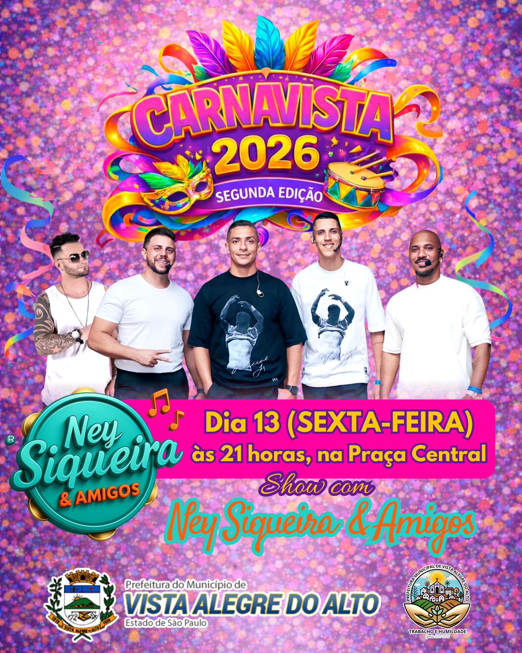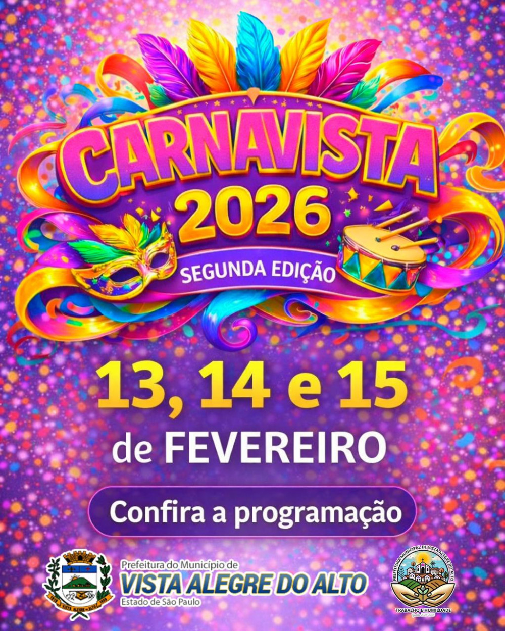 Depois do sucesso da primeira edição, que marcou o retorno do carnaval em Vista Alegre do Alto, o Carnavista volta em 2026 com três dias de muita música, alegria e diversão para todas as idades!