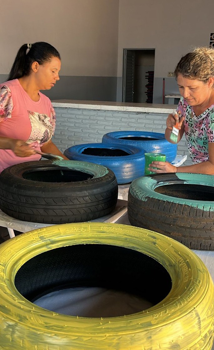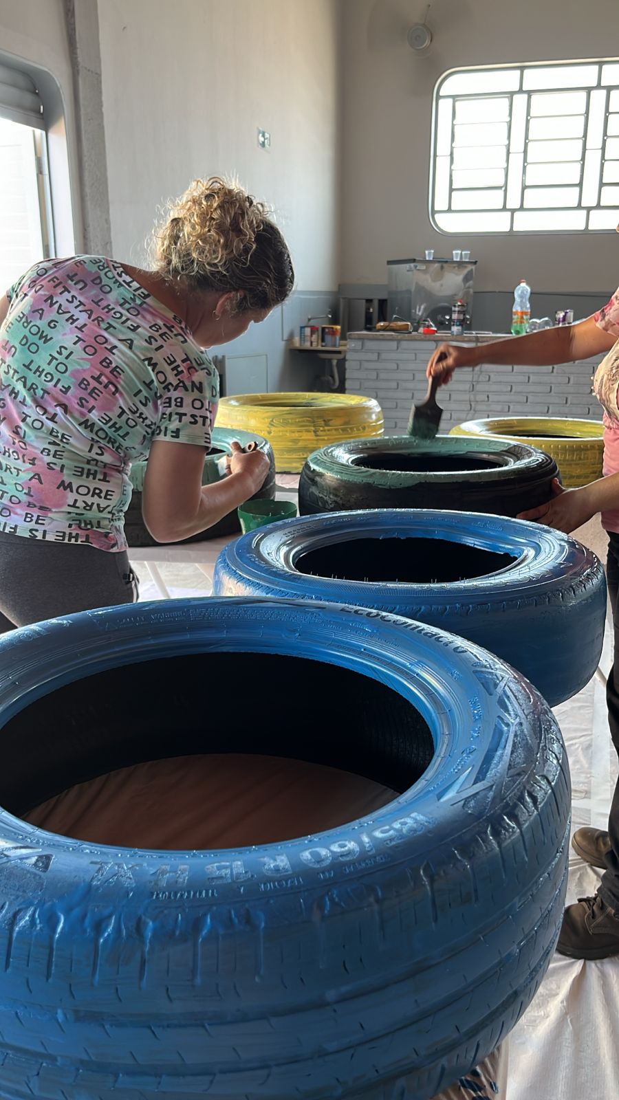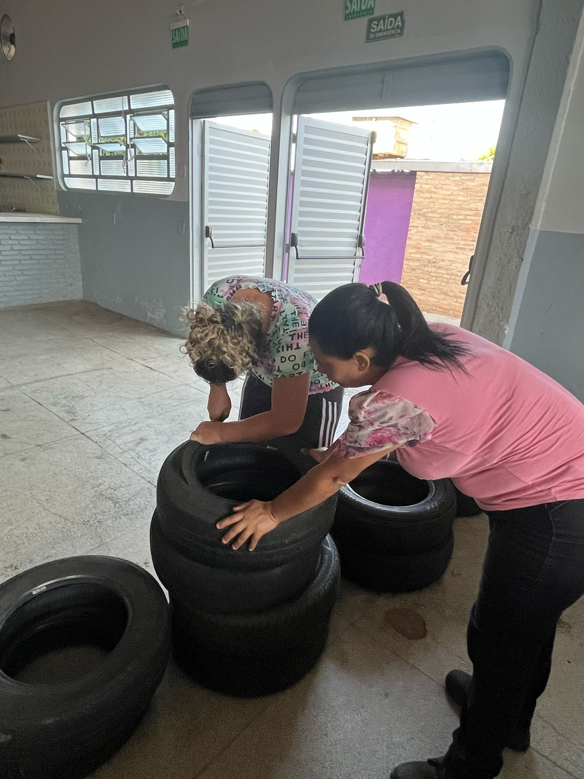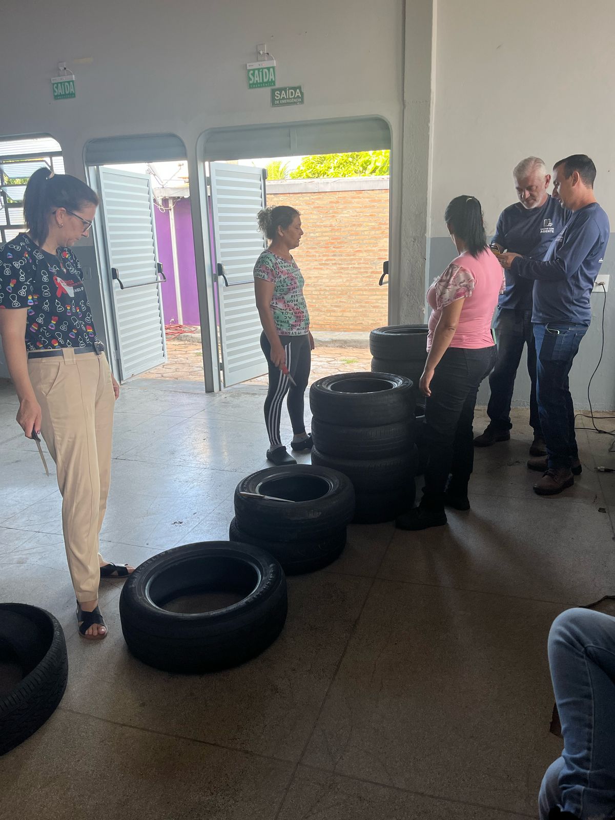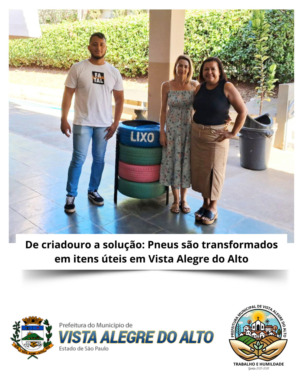 A Prefeitura de Vista Alegre do Alto, por meio das Secretarias de Saúde e Educação, realizou mais uma importante ação para o combate à dengue, unindo conscientização e sustentabilidade. Os pneus recolhidos durante o arrastão contra a dengue foram reaproveitados e transformados em lixeiras, caminhas para pets e pufes.