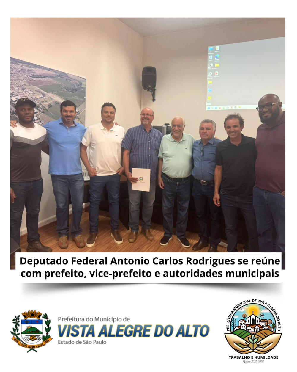 Na manhã desta sexta-feira, o município de Vista Alegre do Alto recebeu a visita do deputado federal Antônio Carlos Rodrigues, que esteve reunido com o prefeito, o vice-prefeito, vereadores e demais autoridades municipais para uma reunião de trabalho.