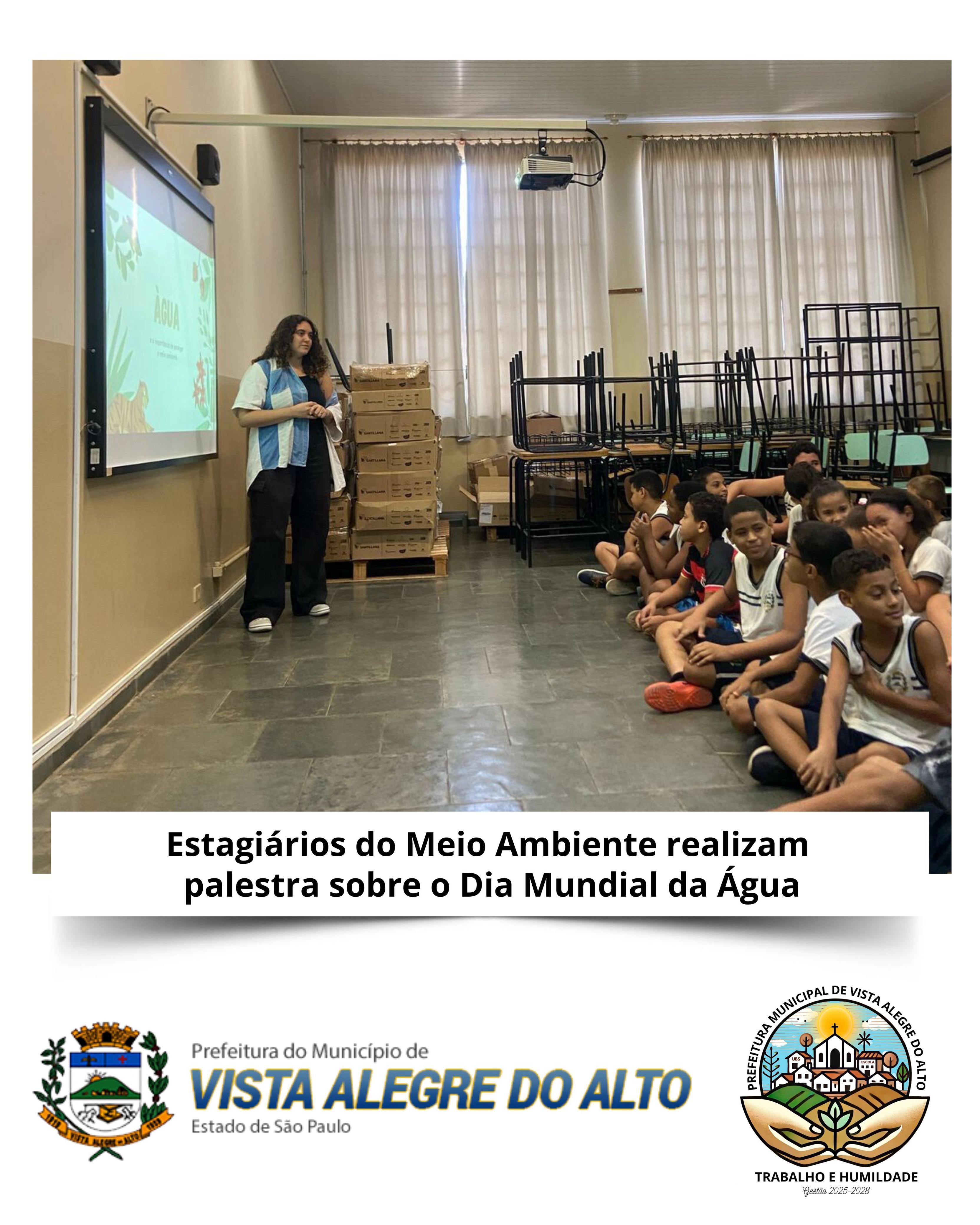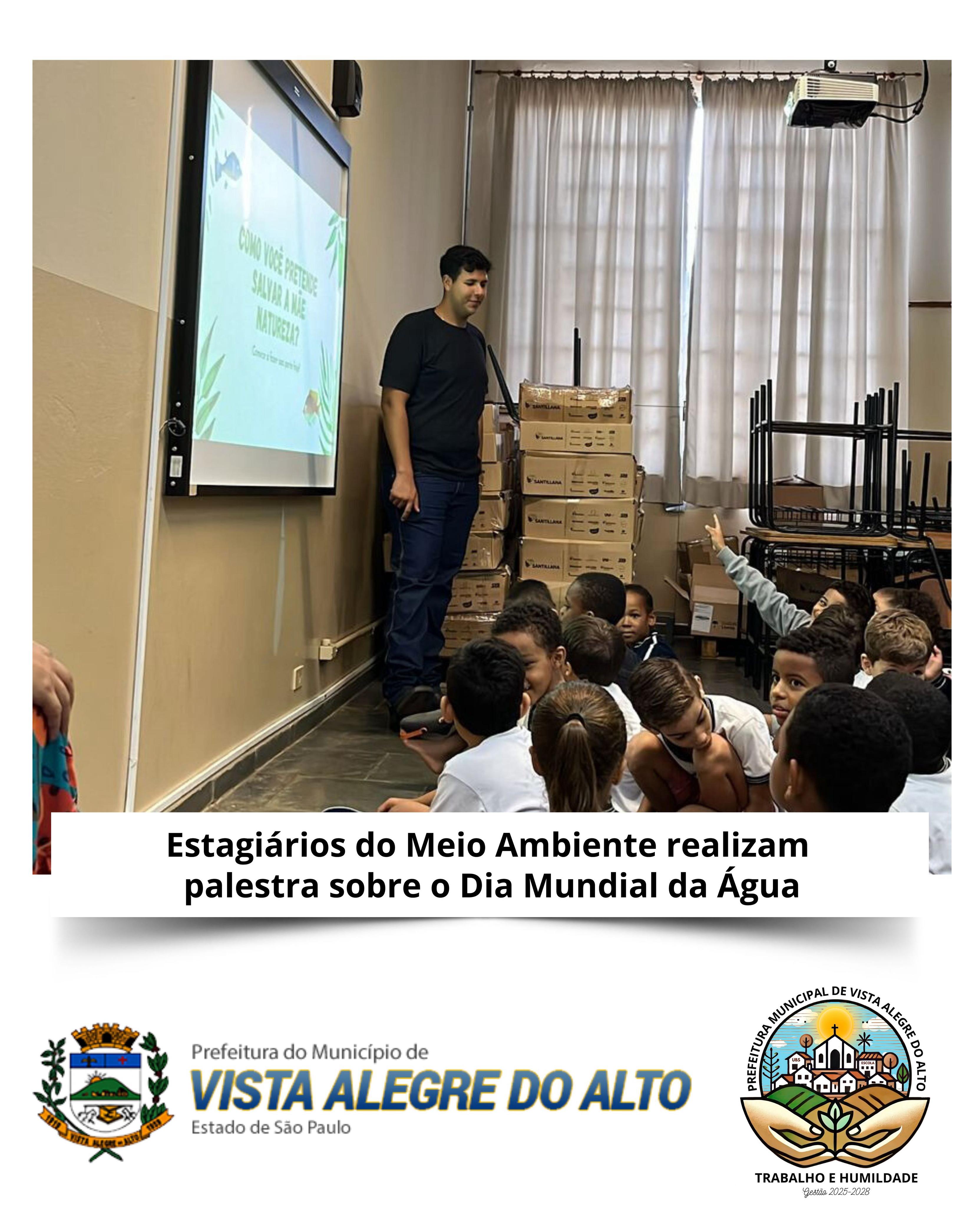 Hoje, os estagiários do setor de Meio Ambiente da Prefeitura de Vista Alegre do Alto, Bianca Caroline da Rocha Possa e José Mauro Almeida dos Santos, ministraram uma palestra especial para os alunos da Escola Municipal Irineu Julião.