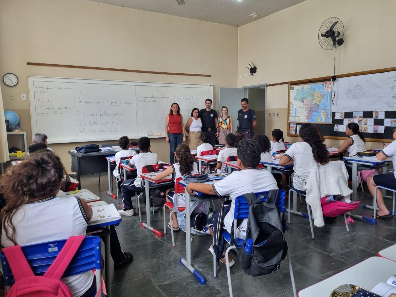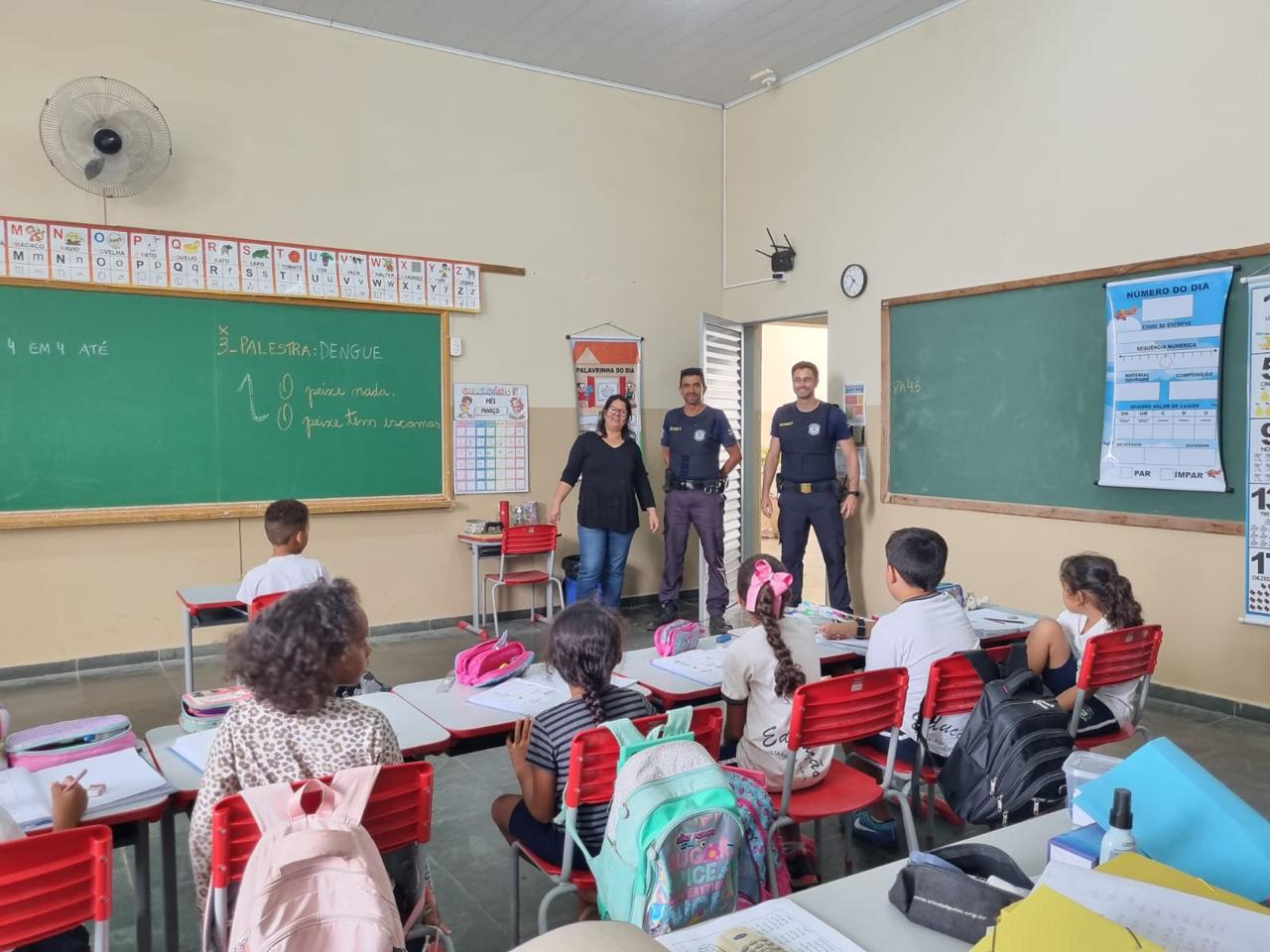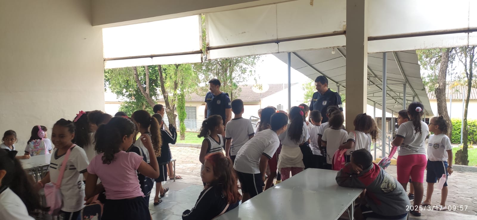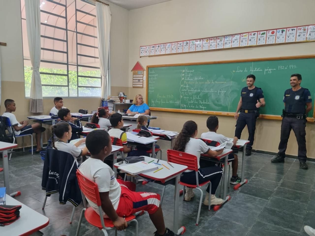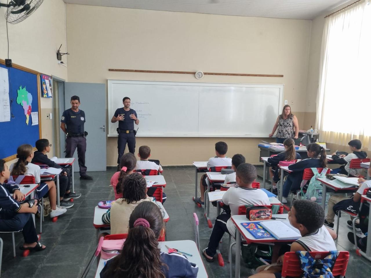 Nesta quarta-feira, 19, o Comandante da Guarda Civil Municipal de Vista Alegre do Alto, Ronaldo Moraes da Silva, e o GCM David Fabiano de Souza visitaram as salas de aula da EMEIEF Irineu Julião. O encontro proporcionou um momento de aproximação e diálogo com os estudantes, fortalecendo a relação de confiança entre a comunidade escolar e a corporação.