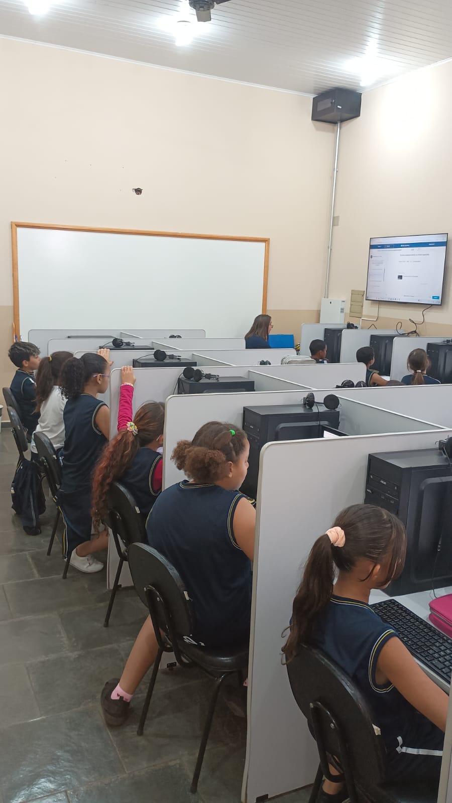 O trabalho está sendo desenvolvido na sala de informática da unidade, sob a orientação da Professora regente da sala e da monitora Graziela Aparecida Gadini Borduqui, que oferece suporte e assessoria aos professores durante as aulas, garantindo melhor aproveitamento da ferramenta digital no processo educativo.