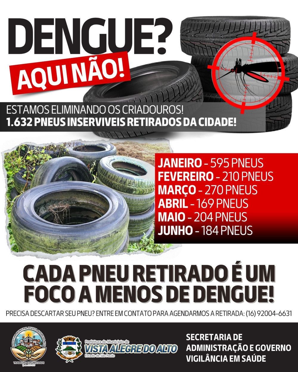 Somente neste ano, foram coletados e enviados para destinação ambientalmente adequada 1.632 pneus inservíveis, evitando que se tornassem potenciais criadouros do mosquito Aedes aegypti.