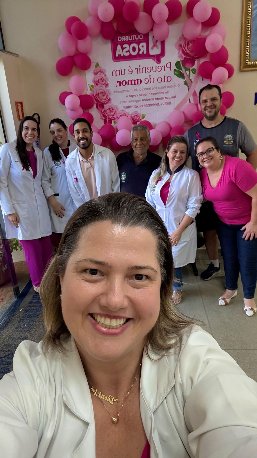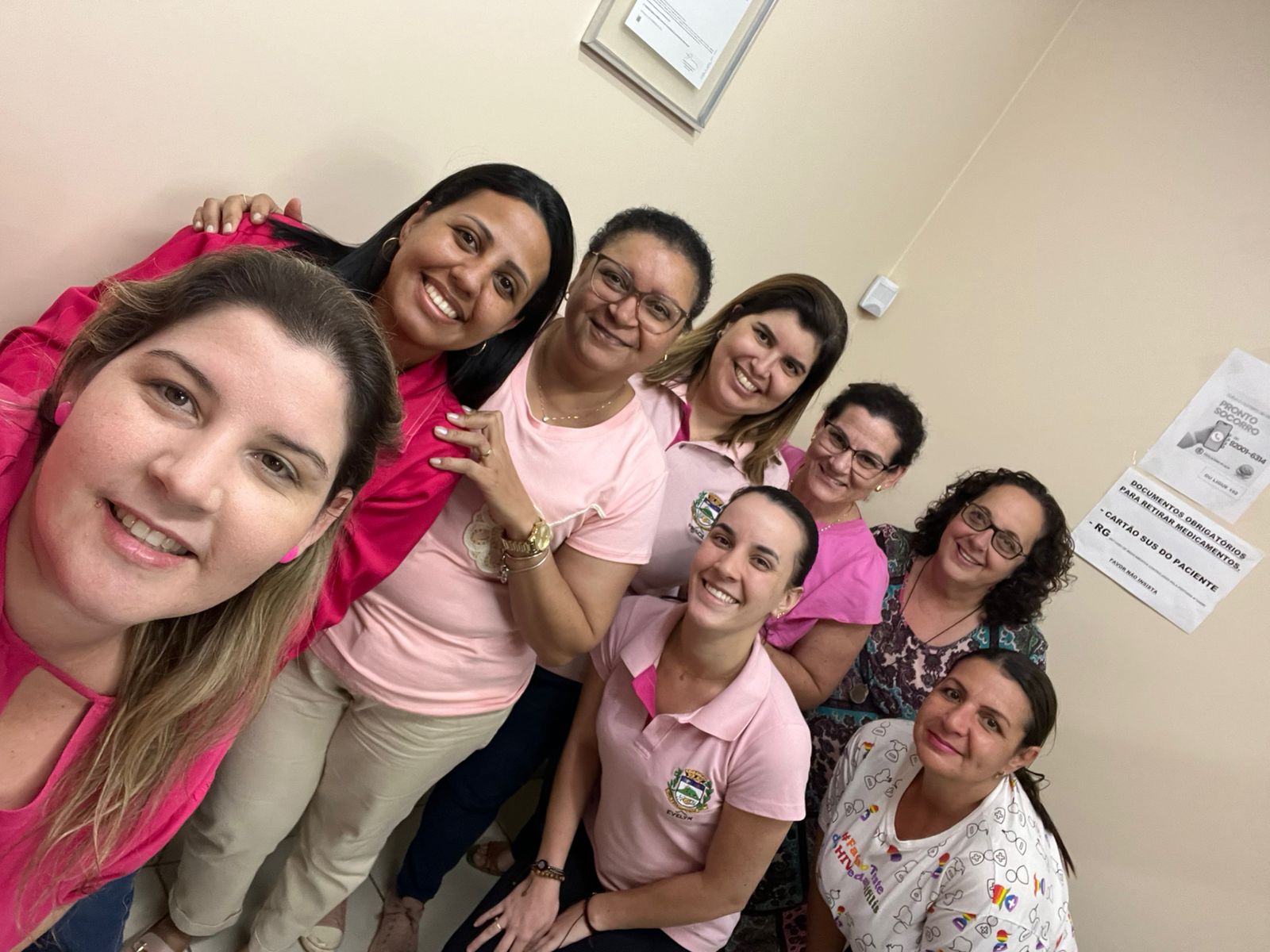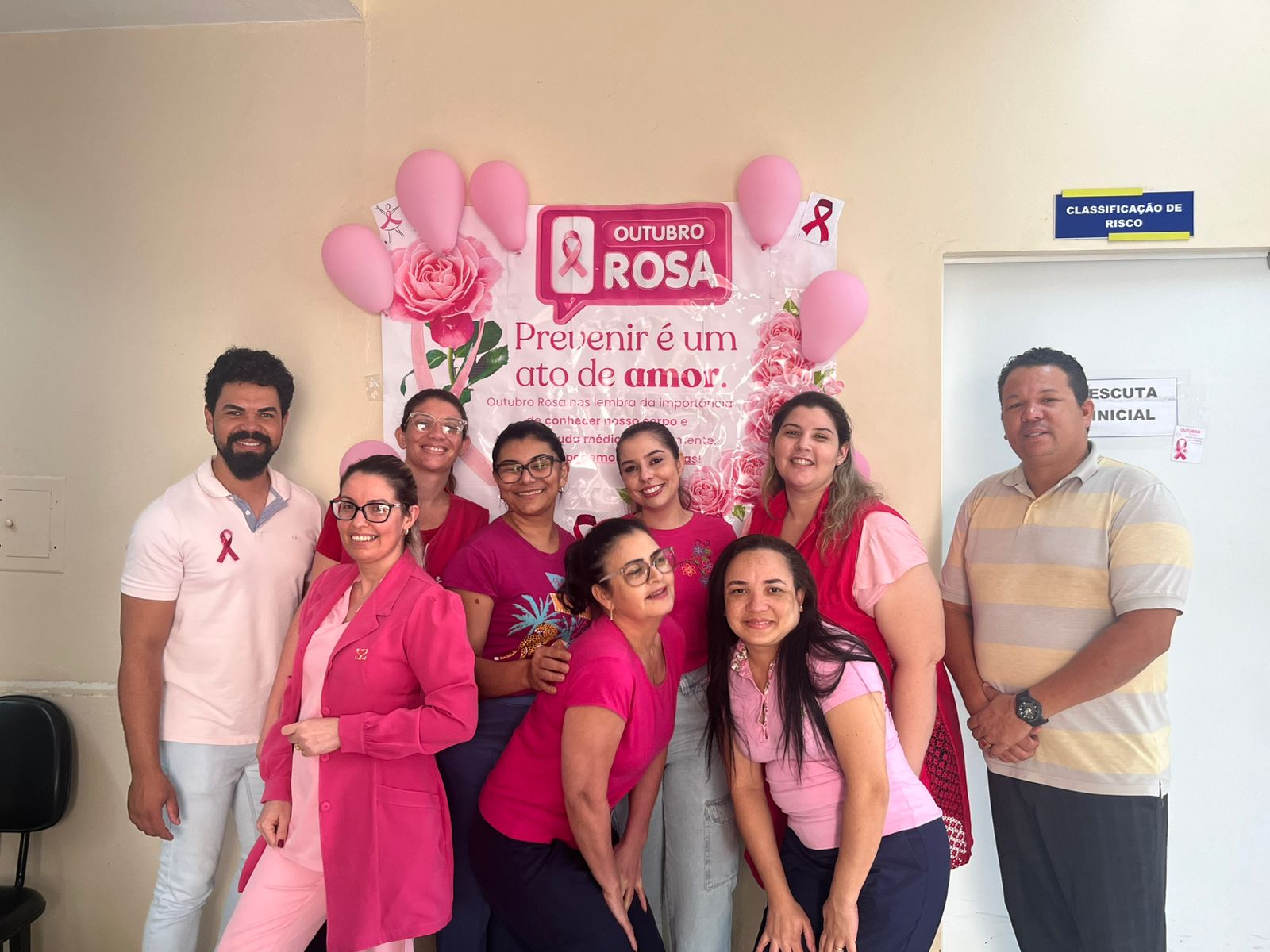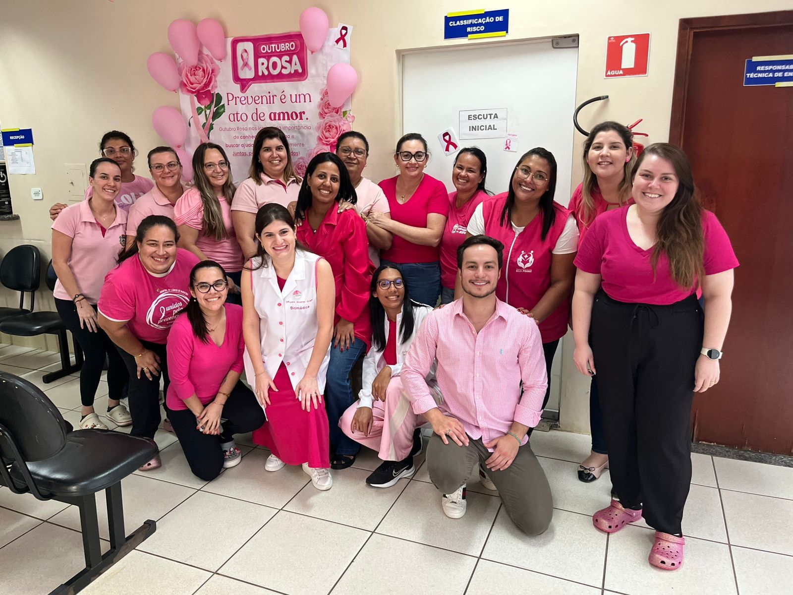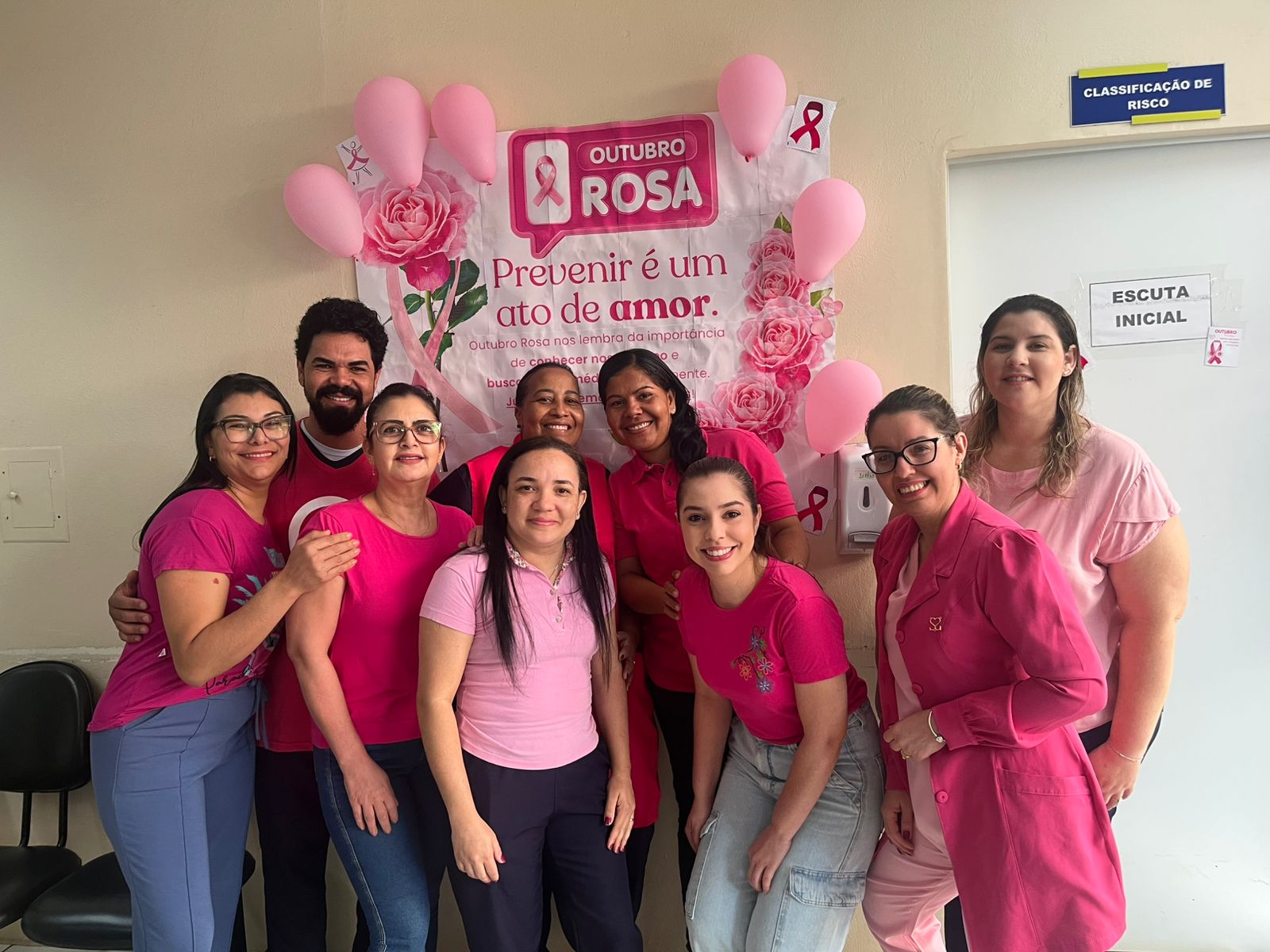 Neste mês de Outubro Rosa, os profissionais e pacientes da UBS, Pronto Socorro, Farmácia Municipal, Fisioterapia, Centro Odontológico e Setor de Agendamento literalmente vestiram a camisa — e a cor rosa — para reforçar a importância da conscientização sobre o câncer de mama.