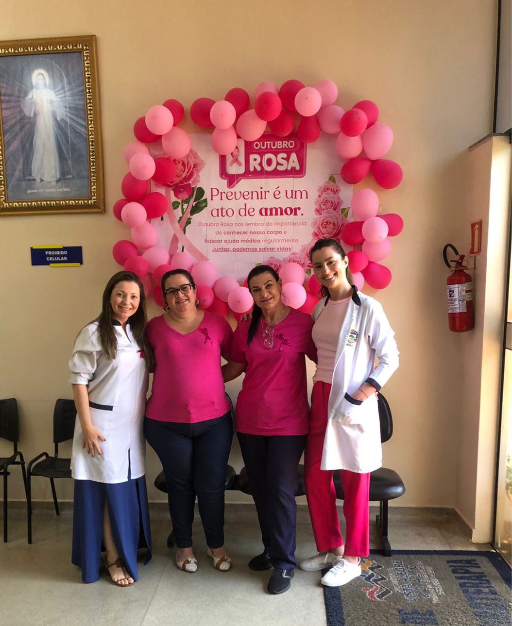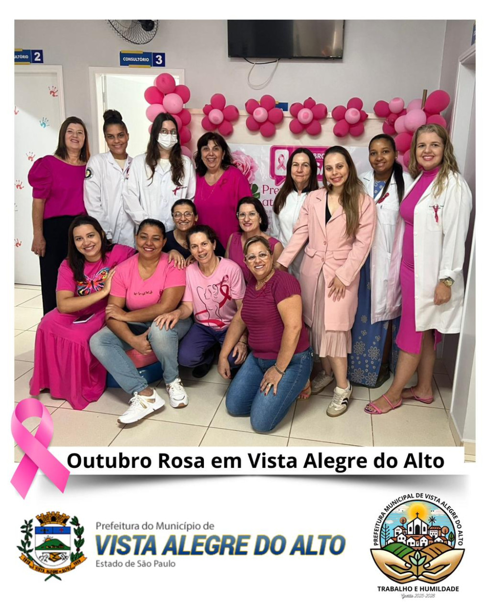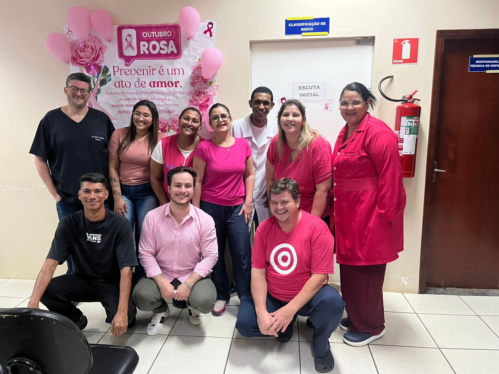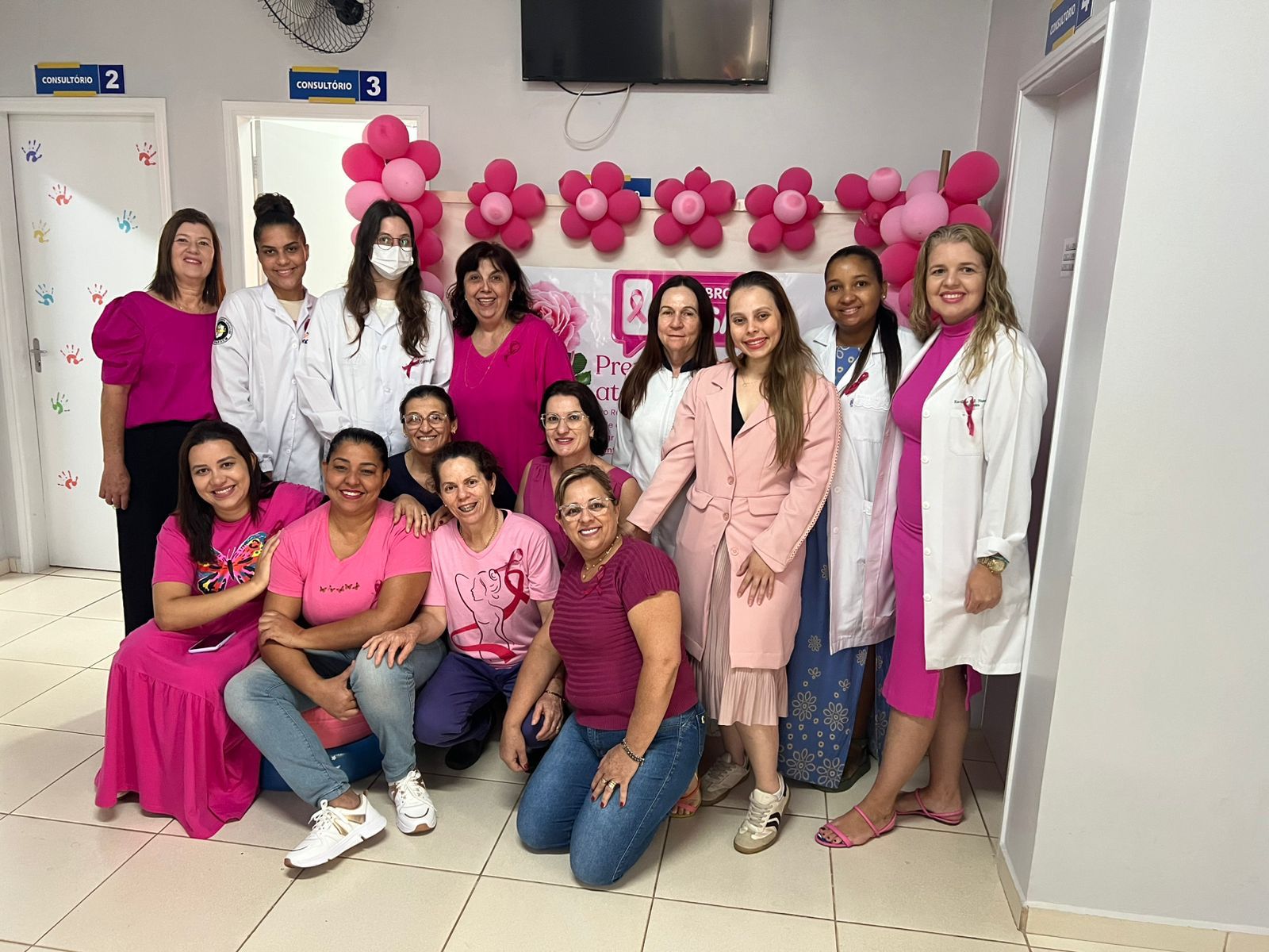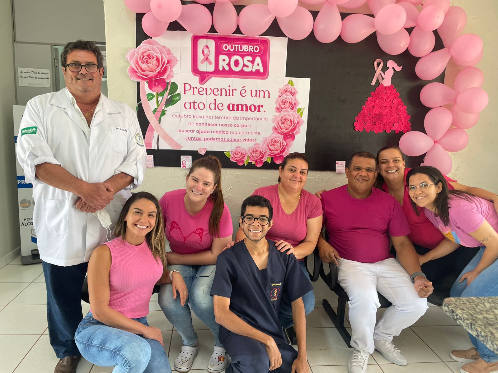 Neste mês de Outubro Rosa, os profissionais e pacientes da UBS, Pronto Socorro, Farmácia Municipal, Fisioterapia, Centro Odontológico e Setor de Agendamento literalmente vestiram a camisa — e a cor rosa — para reforçar a importância da conscientização sobre o câncer de mama.