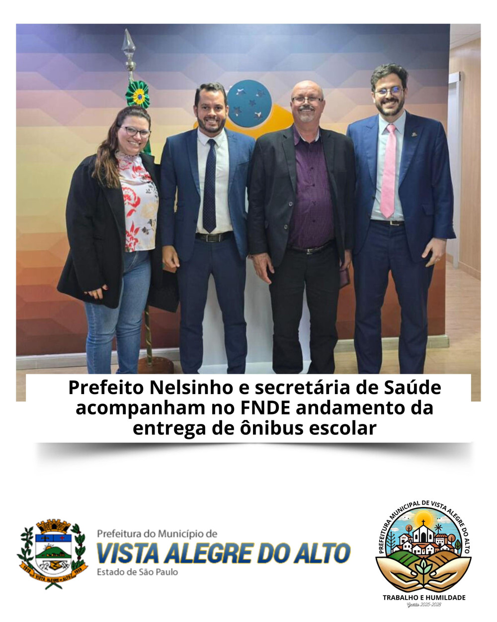 O prefeito de Vista Alegre do Alto, Nelsinho Rozani, e a secretária municipal de Saúde, Nayara Rozani Ortega, estiveram em Brasília nesta semana para uma série de compromissos voltados à saúde, educação e infraestrutura do município.