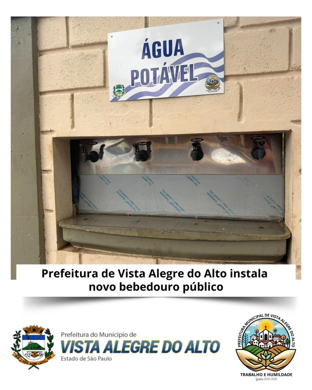 A Prefeitura de Vista Alegre do Alto instalou um bebedouro público com água gelada, disponível para os trabalhadores e toda a população.