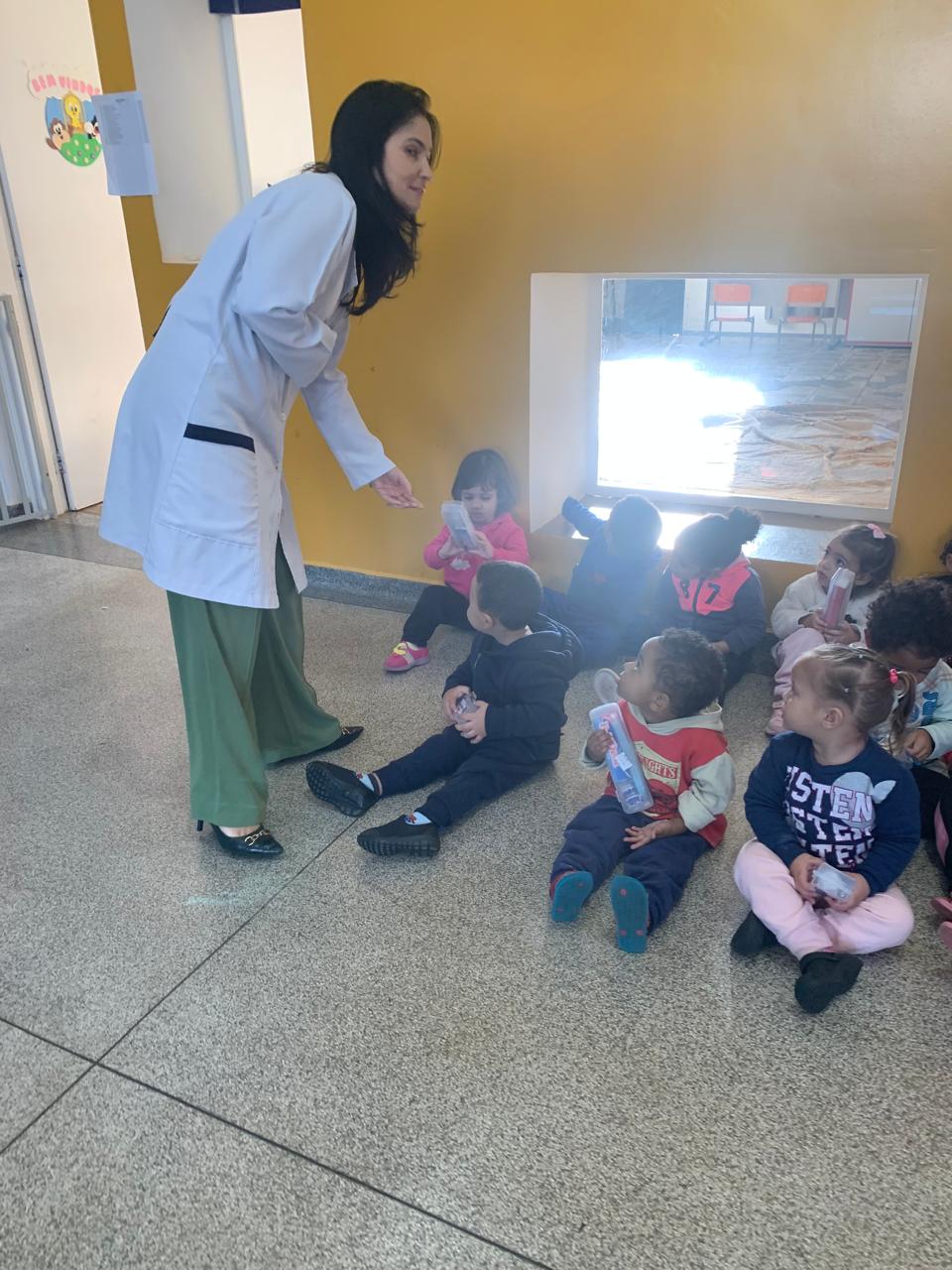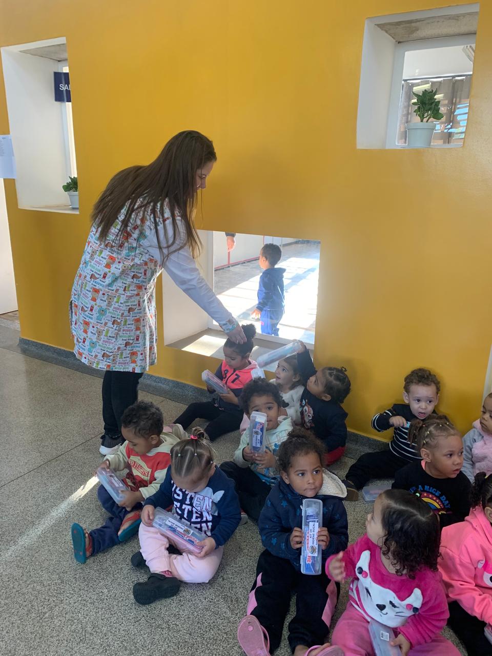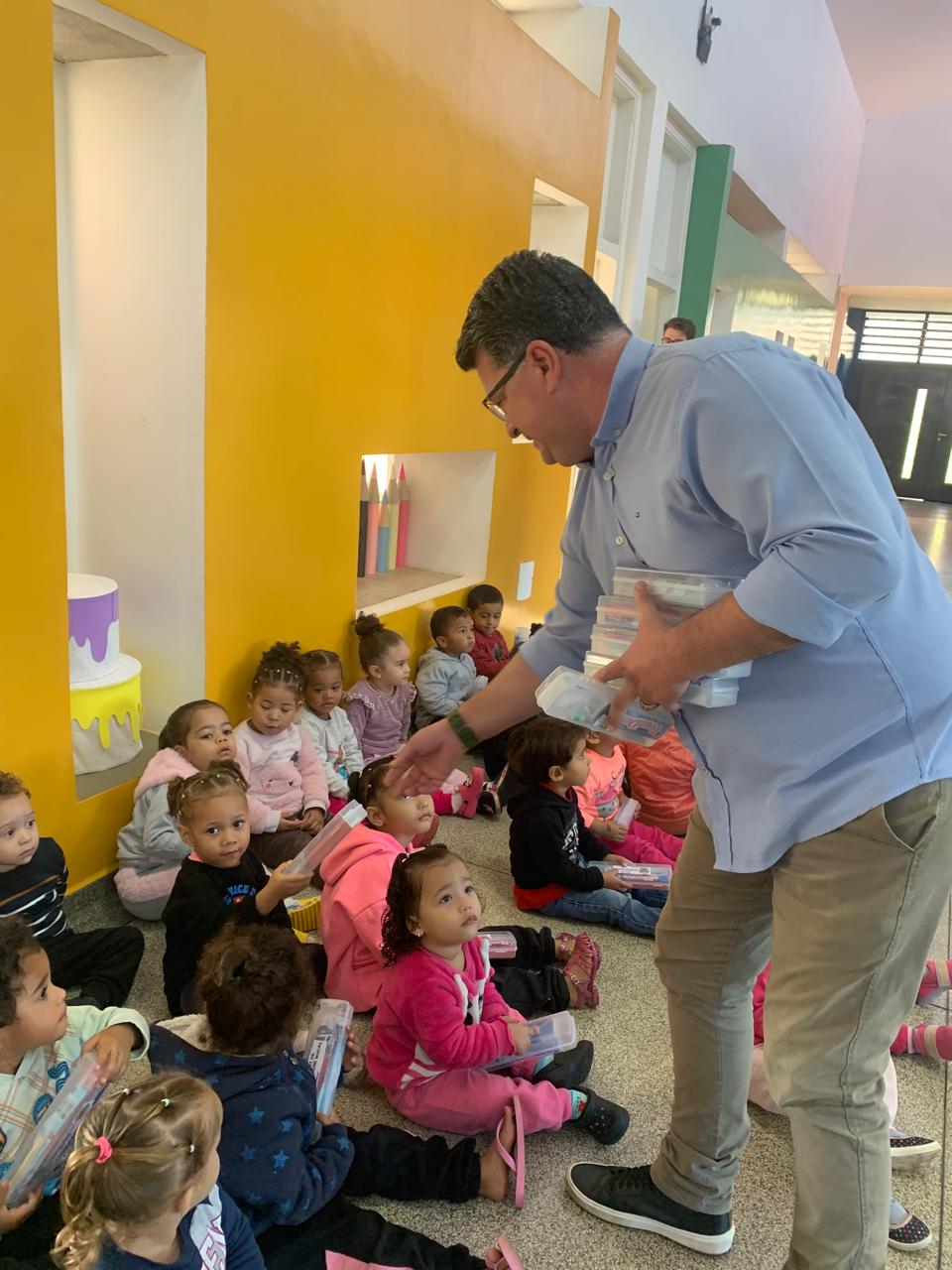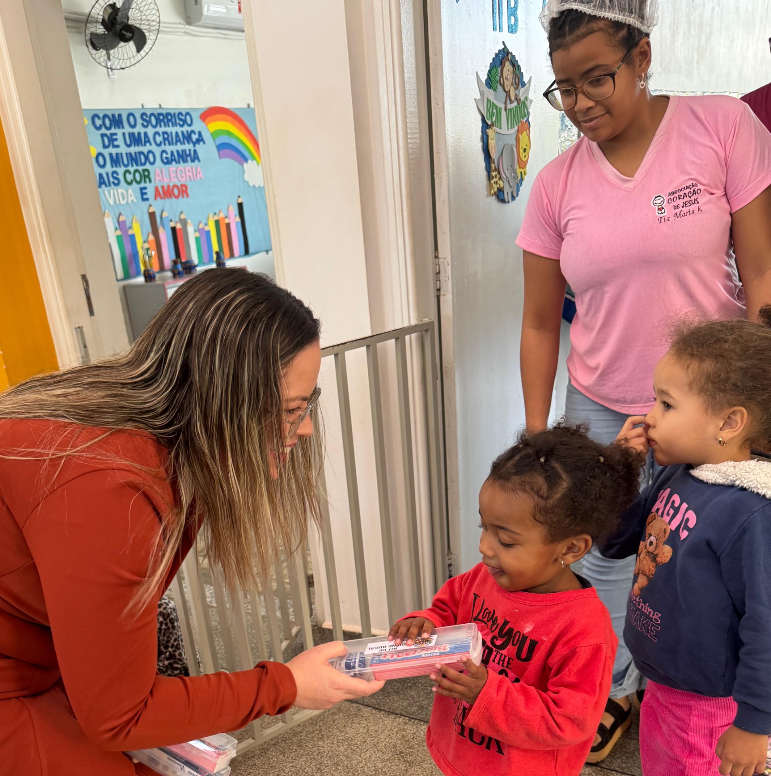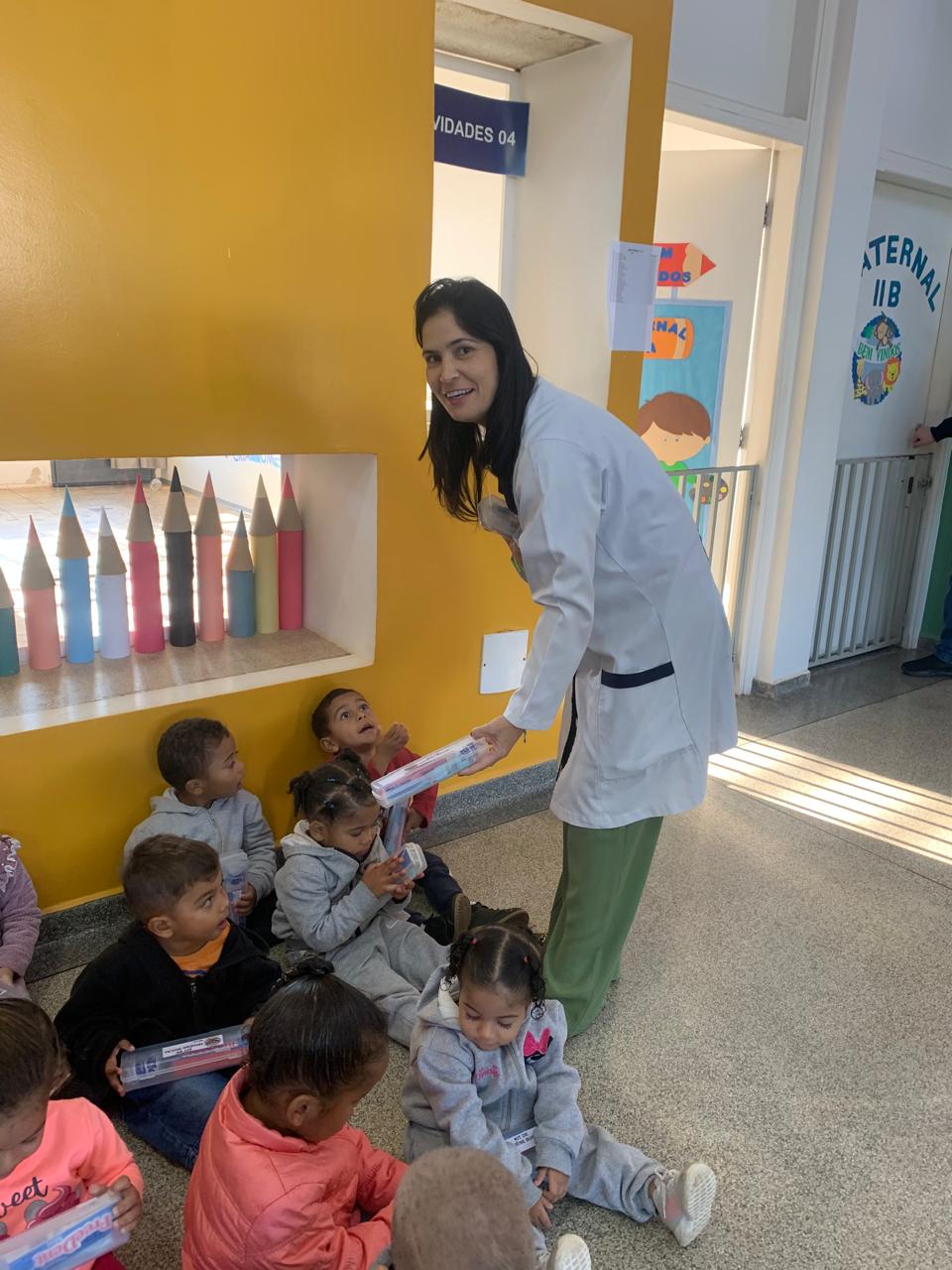 A ação contou com o apoio da coordenadora da creche, Natielli, e da diretora Silvinha, que acompanharam a visita e reforçaram o compromisso da instituição com o bem-estar e a educação das crianças.
