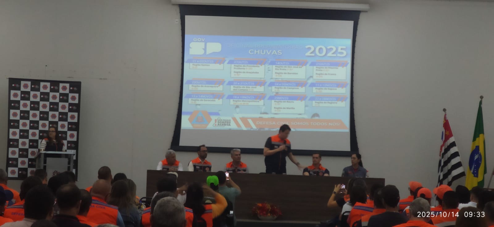 A Coordenadoria Municipal de Defesa Civil de Vista Alegre do Alto, foi representada na última terça-feira (14/10), pelo Ronaldo, Helton e Kieder, no treinamento “São Paulo Sempre Alerta – Chuvas 2025/2026”, realizado no município de Bebedouro. Além da oficina, foram entregues os kits chuvas para os municípios da região de São José do Rio Preto (I-8) e também de Barretos (I-13).