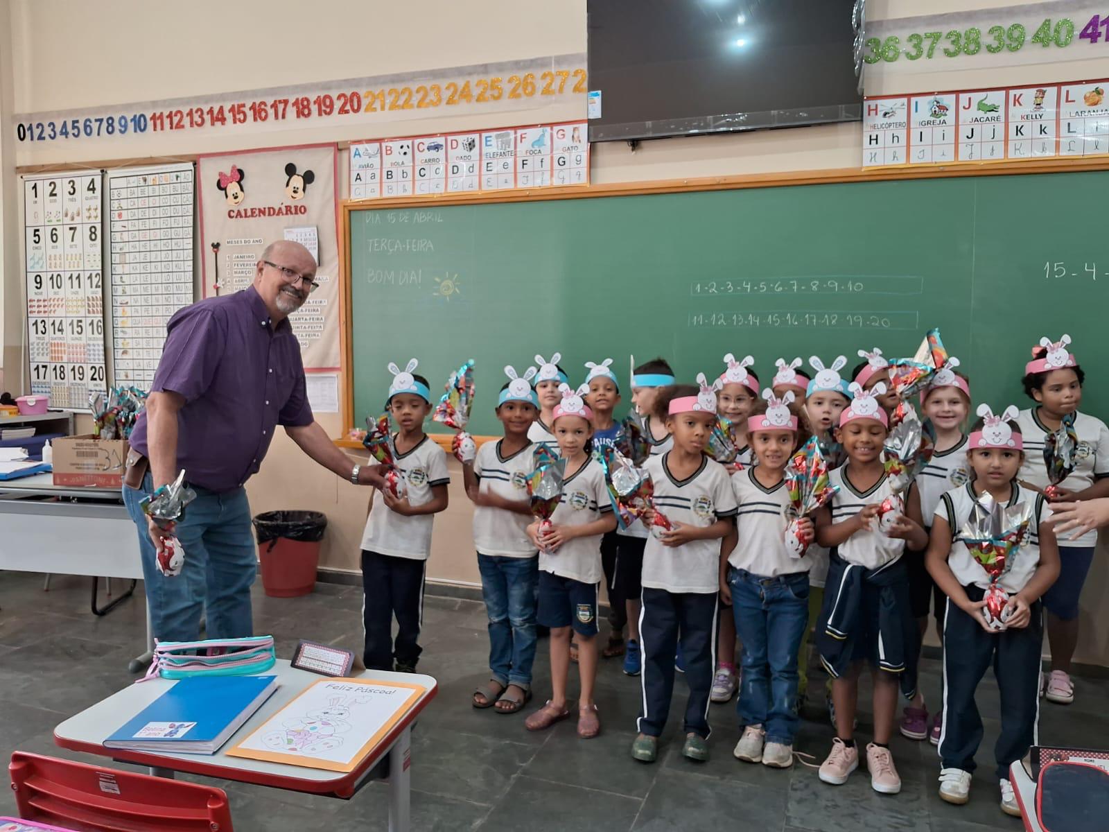 A entrega aconteceu no dia 15 de abril e contou com a presença de coordenadores e professores, que ajudaram a celebrar esse momento de alegria com as crianças.
