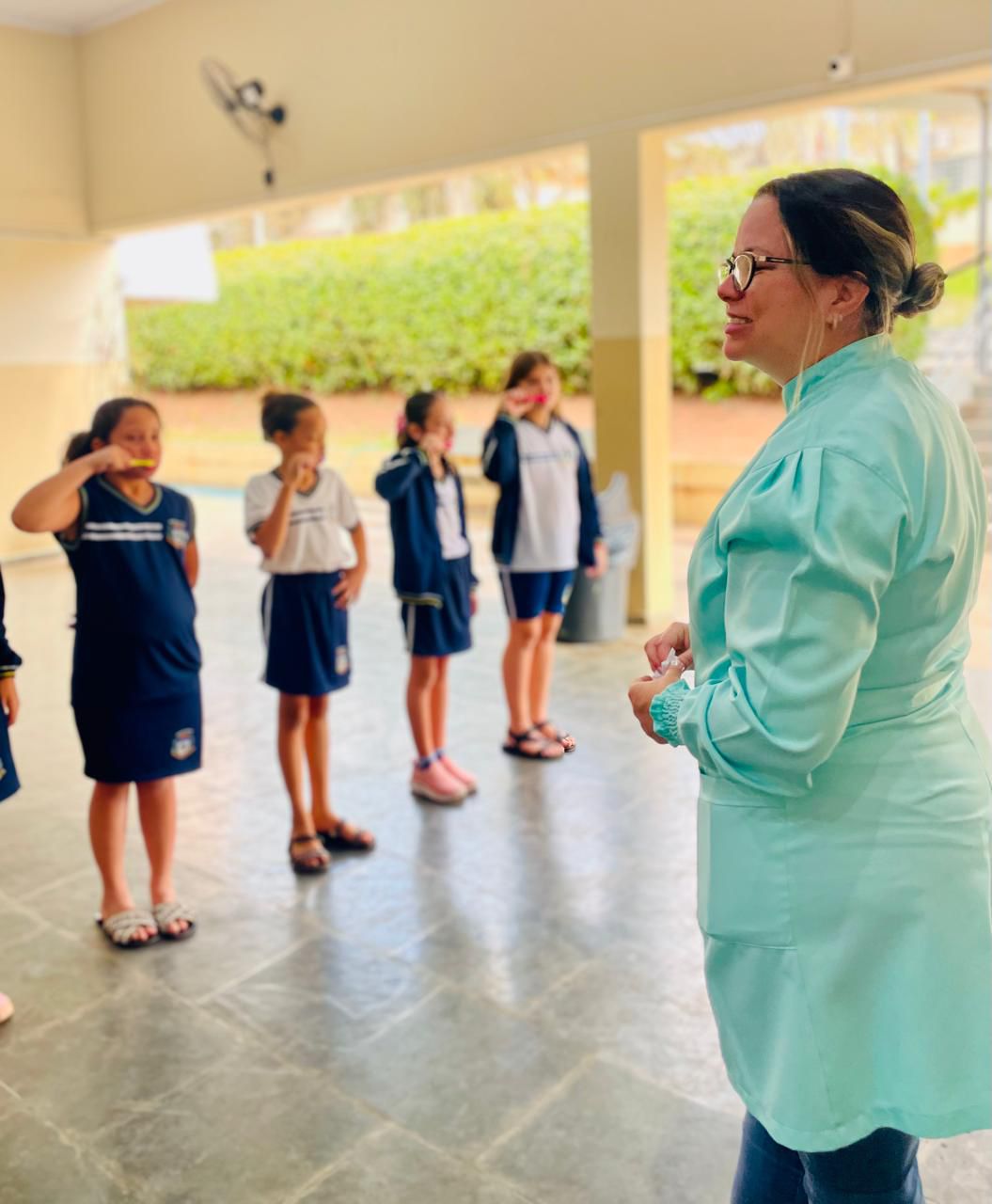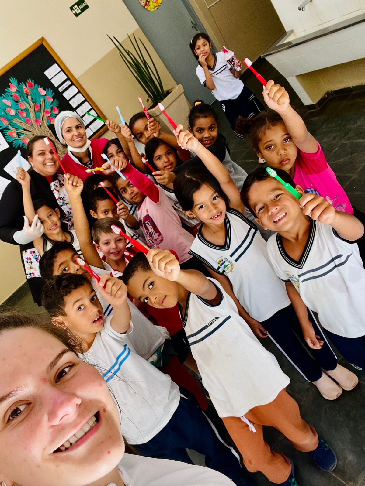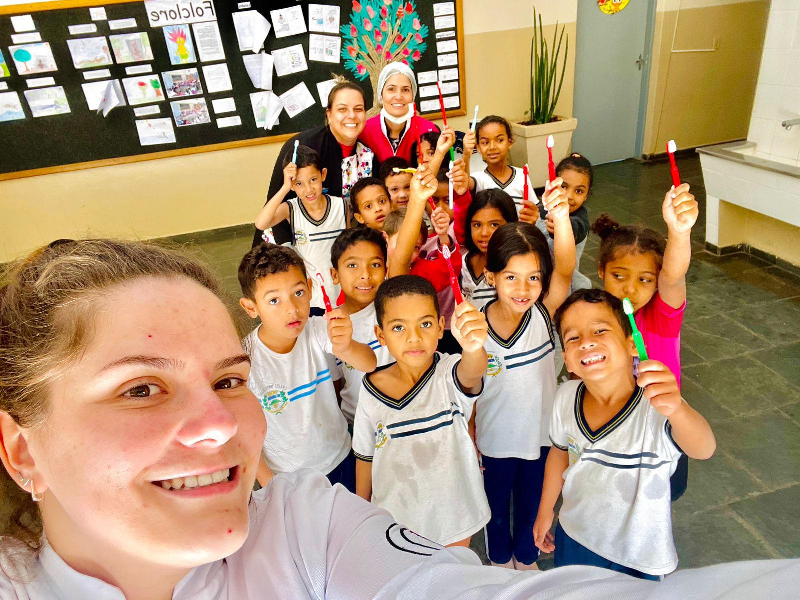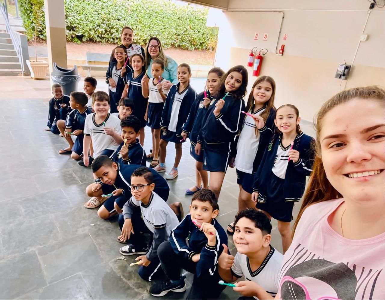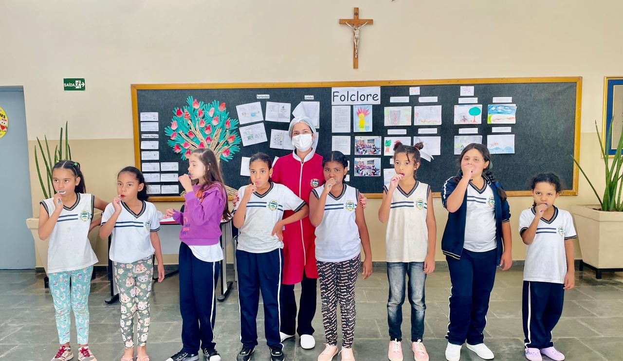 A iniciativa contou com a participação da Dra. Tassia Rozani Fumagali, da Dra. Fernanda Rossi do Prado e das auxiliares de saúde bucal Bruna Ungaro e Eduarda Debiagi que orientaram os estudantes sobre a importância da higiene bucal, a forma correta de escovação e os cuidados essenciais para manter um sorriso saudável.