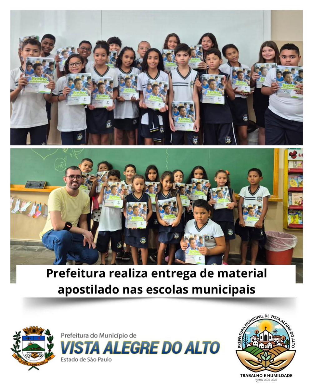Nesta semana, a Prefeitura de Vista Alegre do Alto, por meio da Secretaria Municipal de Educação, realizou a entrega do material apostilado do Sistema Universitário nas unidades escolares do município.
