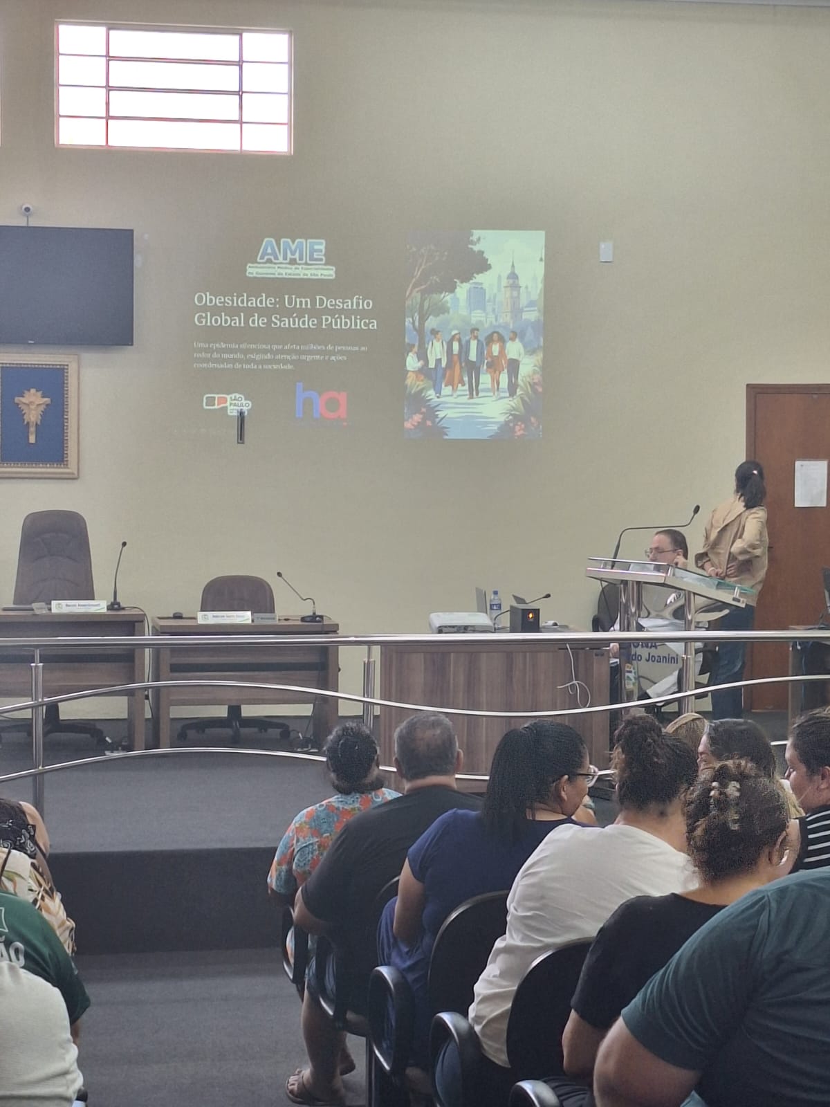 A apresentação aconteceu na Câmara Municipal, reunindo profissionais da saúde e participantes do grupo.