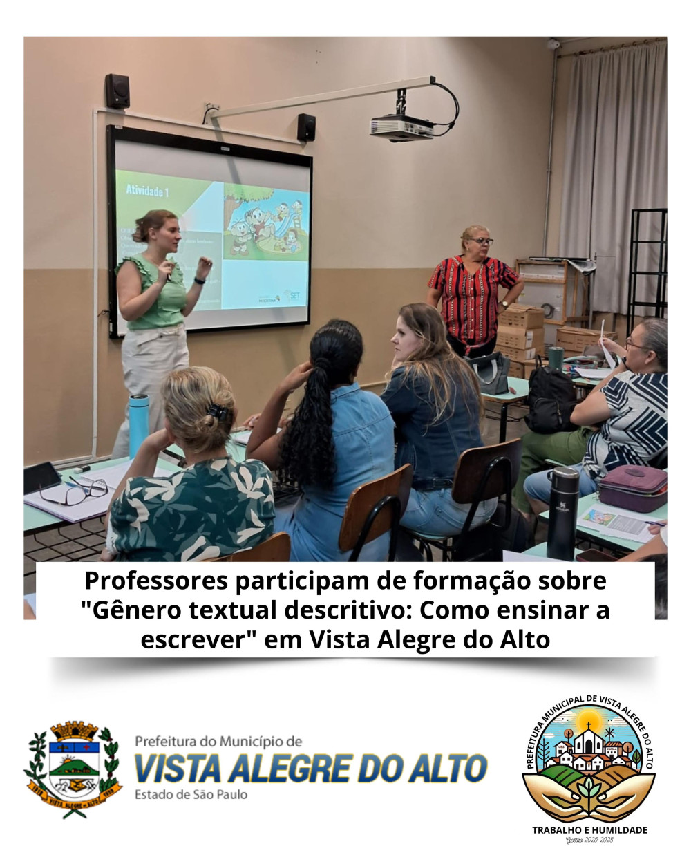 Na terça-feira, 23, equipe de Educação de Vista Alegre do Alto participou do 3º Ciclo Formativo do Cronograma de Formação 2025, destinado aos professores do Ensino Fundamental – Anos Iniciais (EF1). O encontro aconteceu das 17h20 às 19h e reuniu educadores em um momento de aprendizado e troca de experiências.