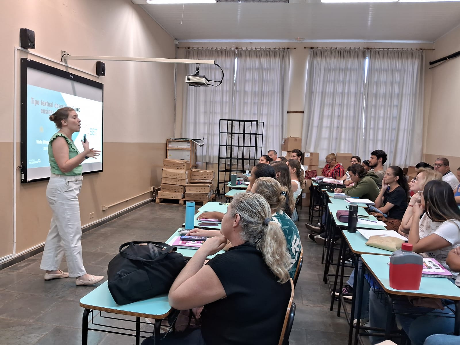 Com o tema “Gênero textual descritivo: Como ensinar a escrever”, a formação teve como objetivo auxiliar os docentes a reconhecer as principais características desse tipo de texto e a planejar atividades que incentivem os alunos a ampliar o vocabulário e a desenvolver descrições mais claras e precisas.