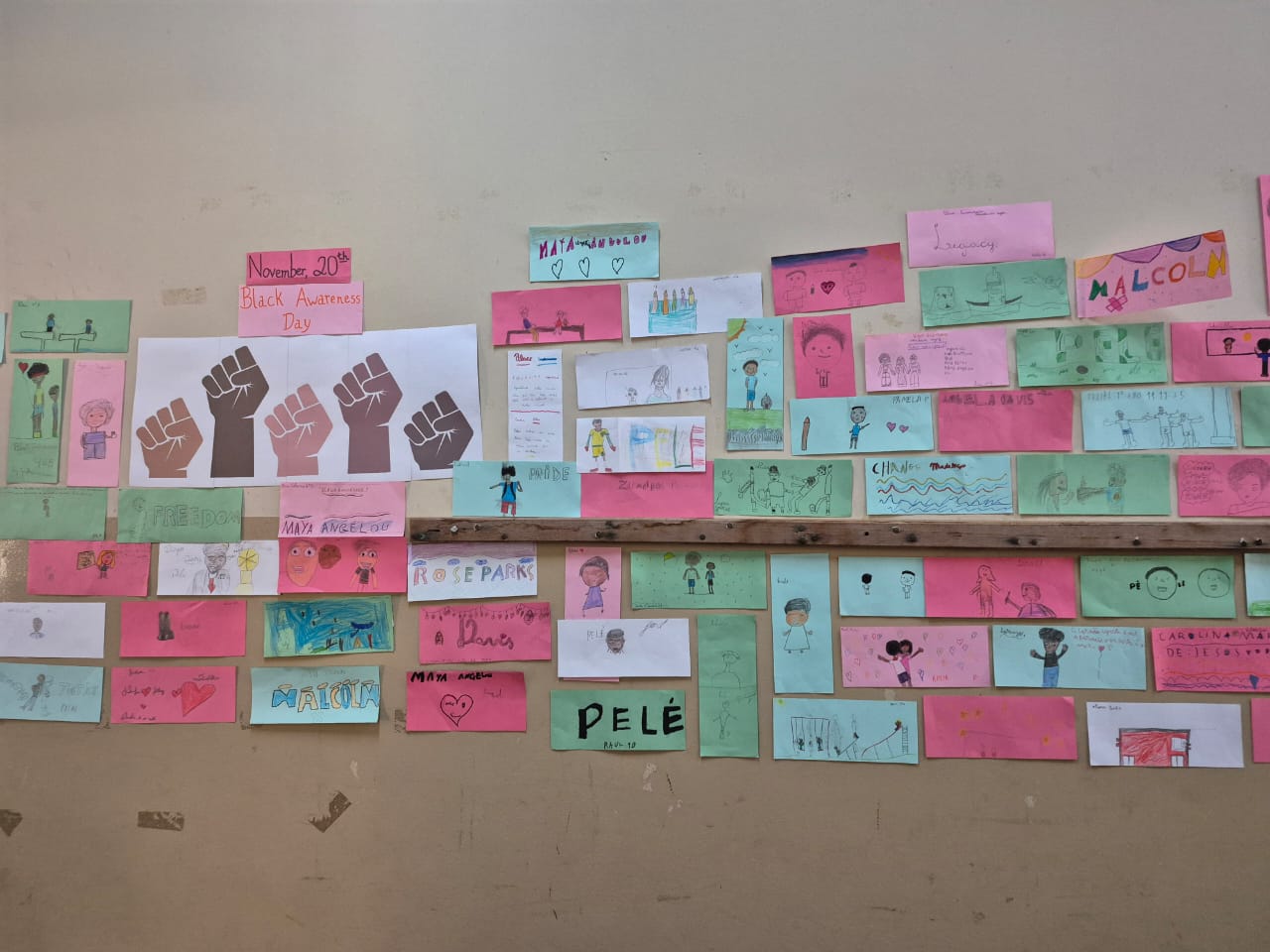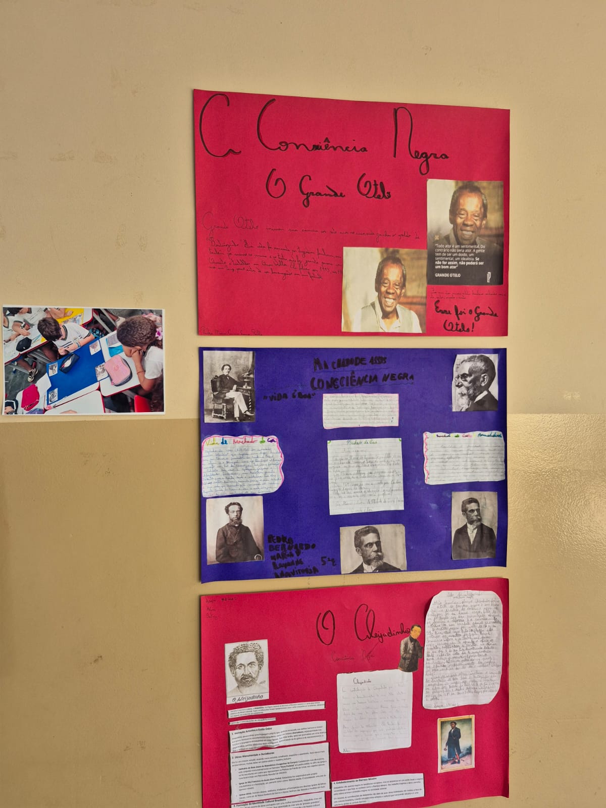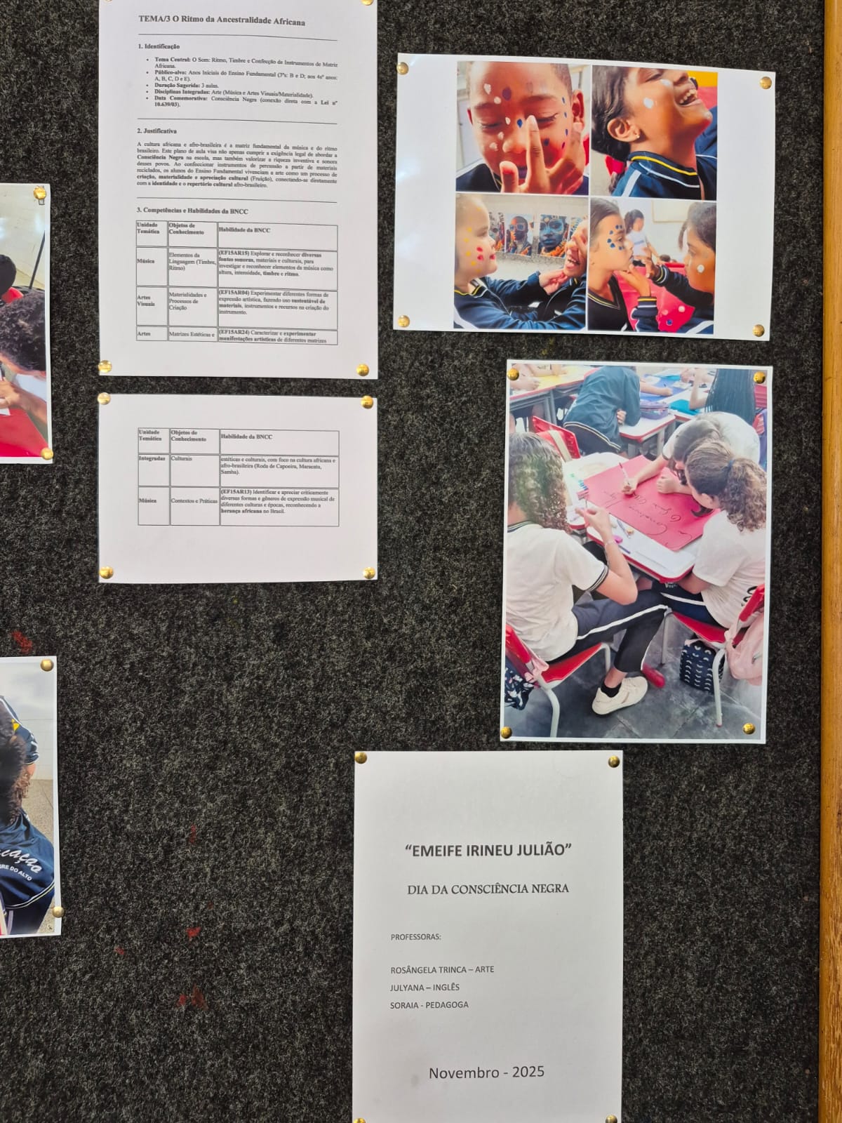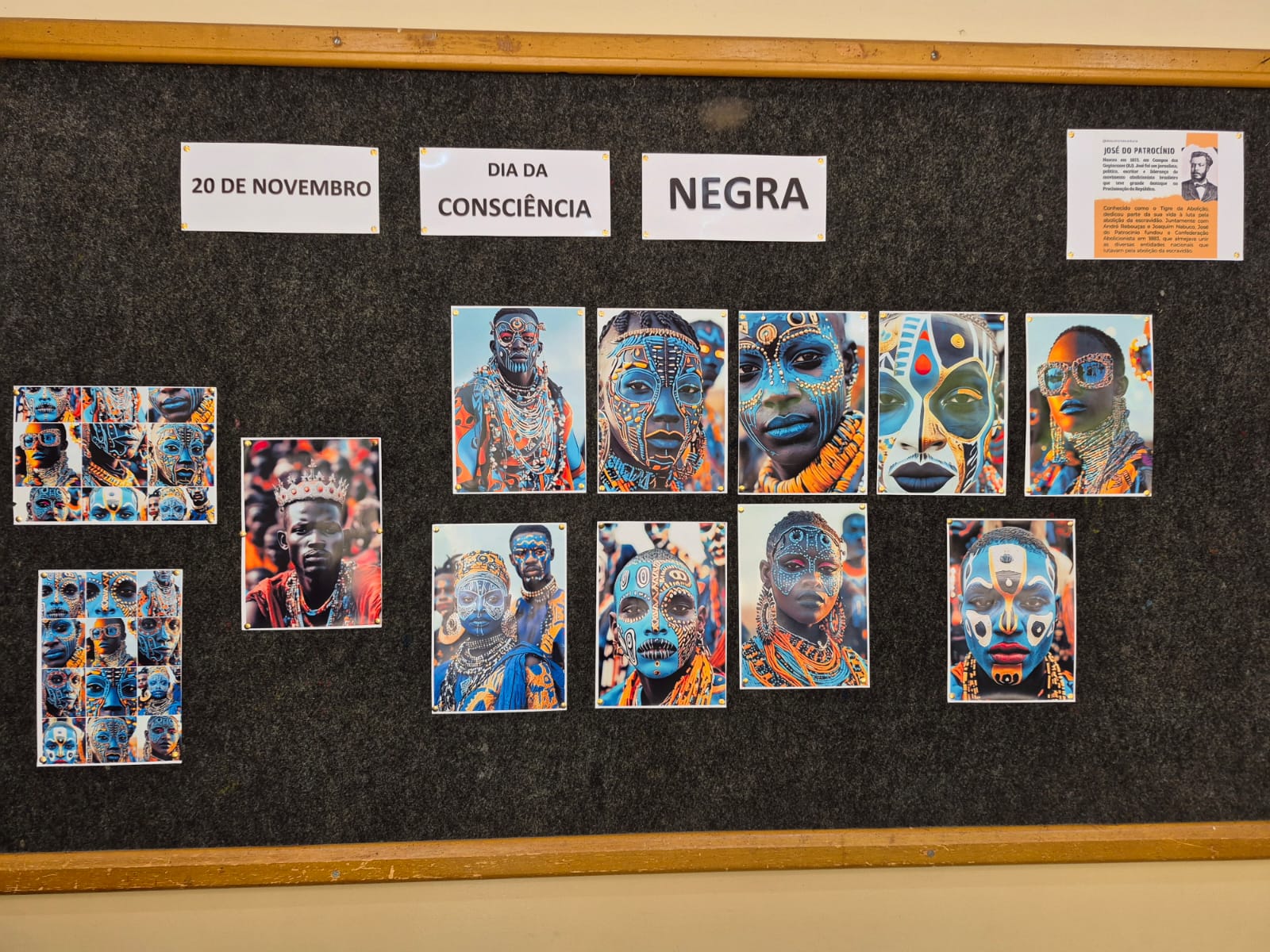 Os alunos dos 5º anos, orientados pela professora de Arte Rosângela Coelho Trinca, desenvolveram um projeto de Arte sobre a Consciência Negra, com foco na pintura de autorretrato, na cor da pele e na pintura tribal africana.