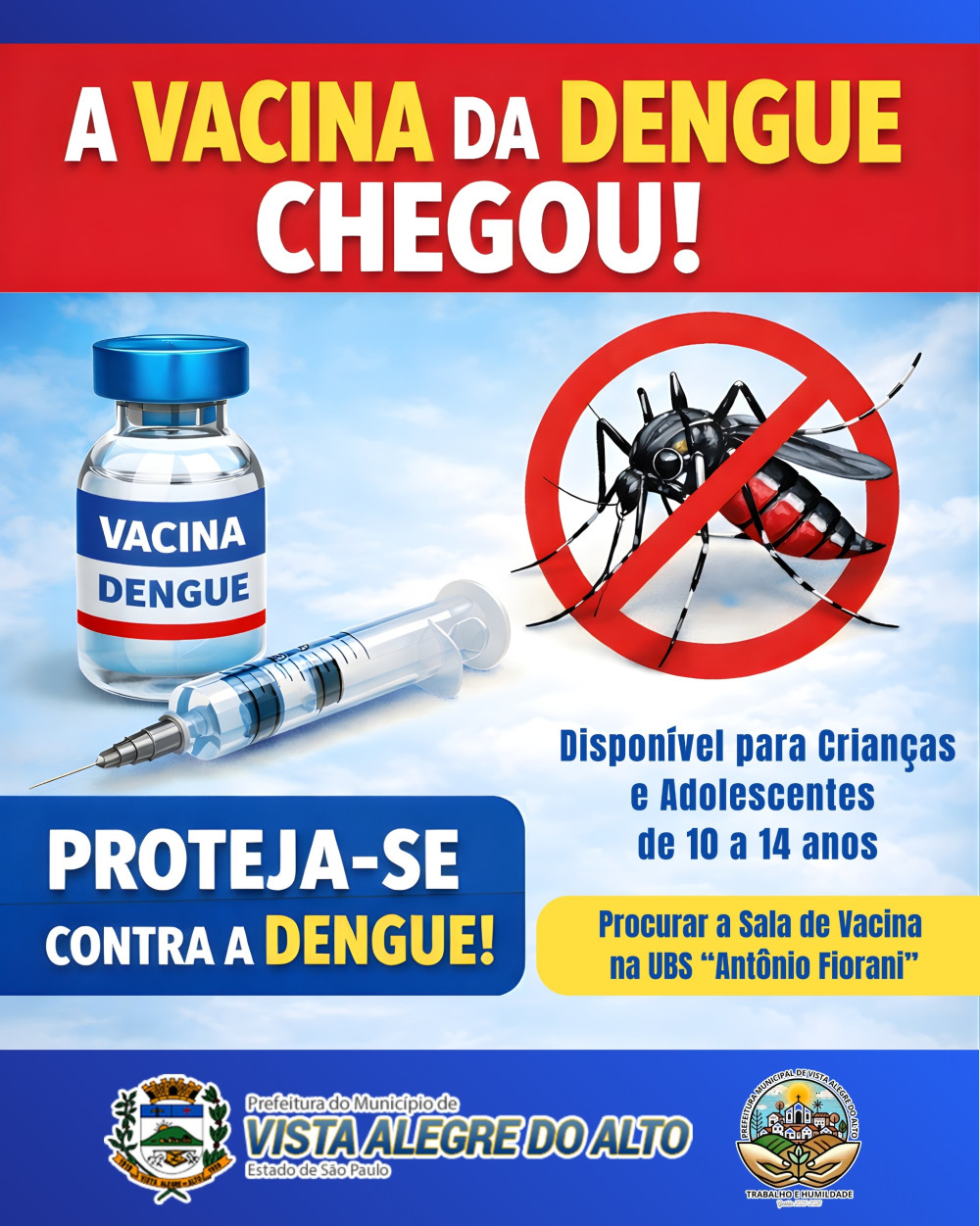 O município de Vista Alegre do Alto recebeu as doses da vacina contra a dengue, um importante reforço nas ações de prevenção e combate à doença. A imunização já está disponível na rede pública de saúde e faz parte das estratégias para reduzir casos graves e proteger a população.