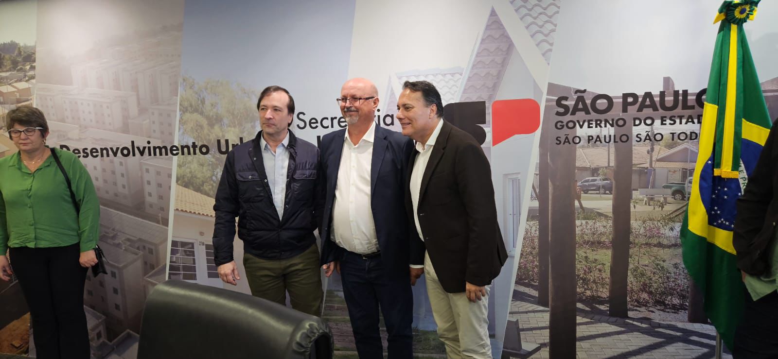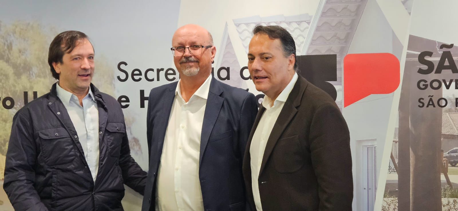 Ao lado do deputado estadual Átila Jacomussi, o prefeito foi recebido pelo secretário de Habitação, Marcelo Cardinale Branco, que confirmou o andamento do processo. A expectativa é de que sejam construídas 70 casas pelo programa da CDHU (Companhia de Desenvolvimento Habitacional e Urbano), beneficiando famílias de Vista Alegre do Alto.
