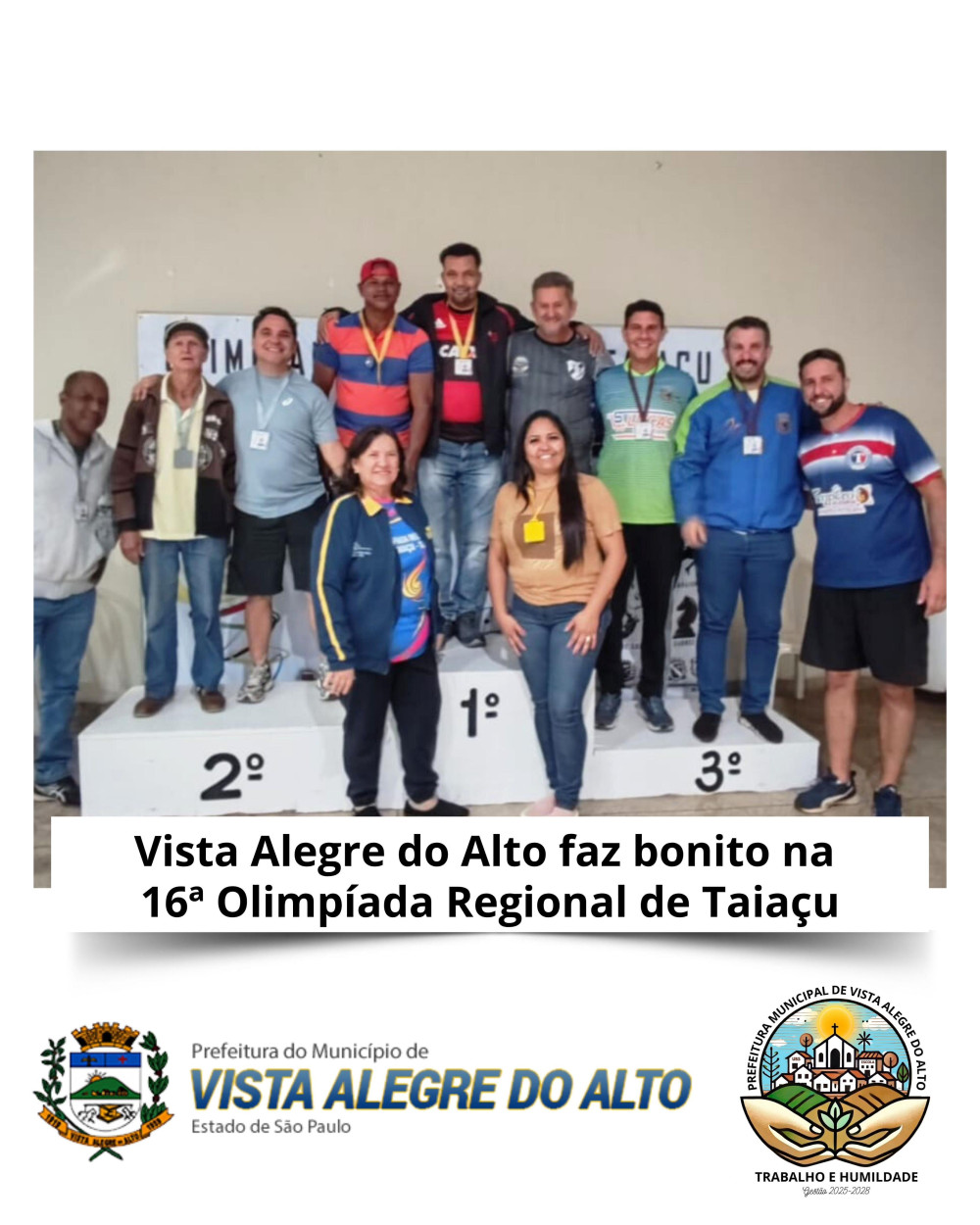 A Prefeitura de Vista Alegre do Alto, juntamente com o departamento de Esporte e Turismo, parabeniza todos os atletas e treinadores pelo empenho, talento e espírito esportivo demonstrado ao longo da competição.