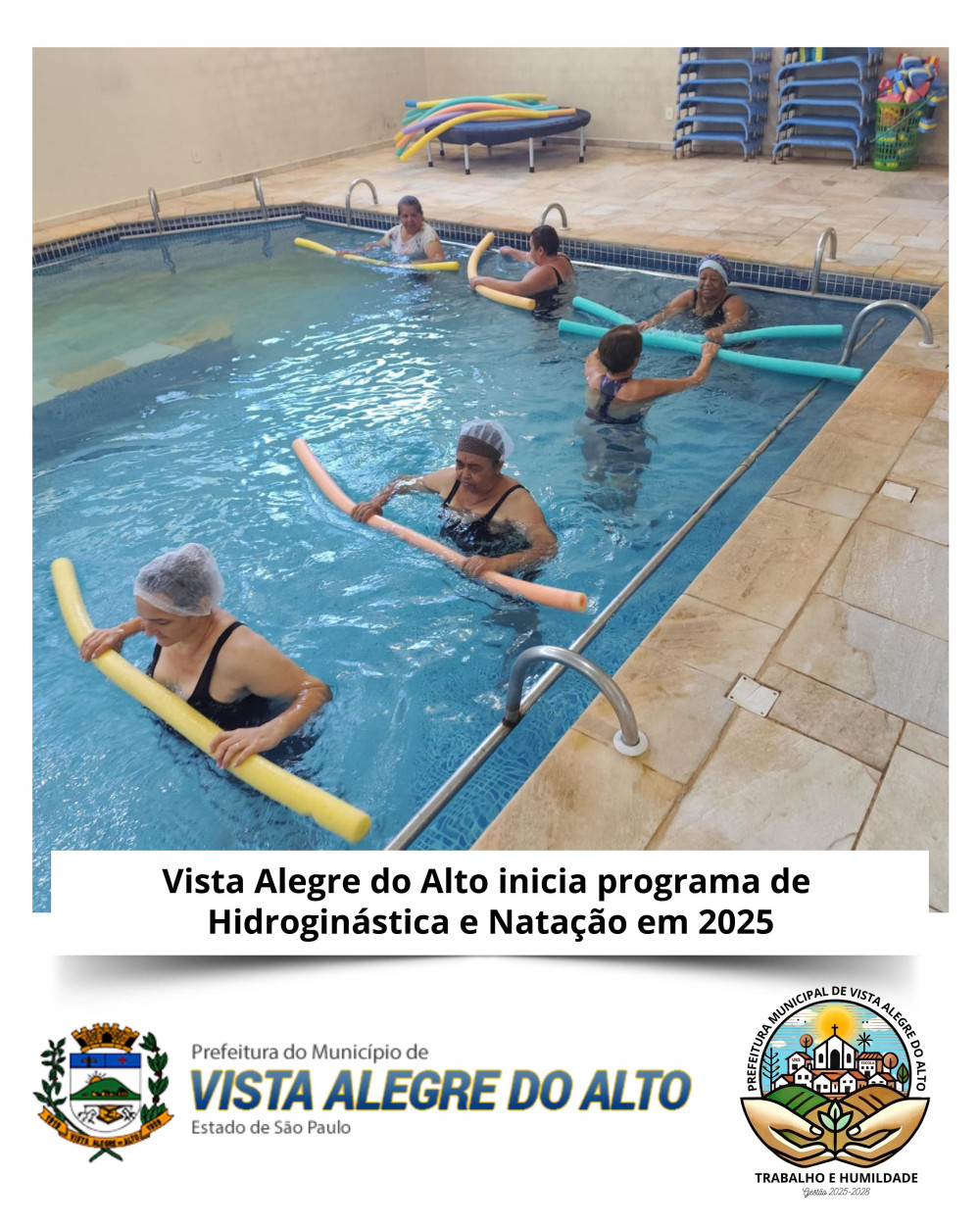 A Prefeitura de Vista Alegre do Alto, em parceria com a Secretaria de Esporte, deu início à programação de Hidroginástica e Natação 2025 no Centro de Fisioterapia e Hidroterapia. O Educador Físico, professor Gregory, foi o responsável por ministrar as aulas inaugurais das turmas de hidroginástica, tanto feminina quanto masculina, além das aulas de natação infantil.