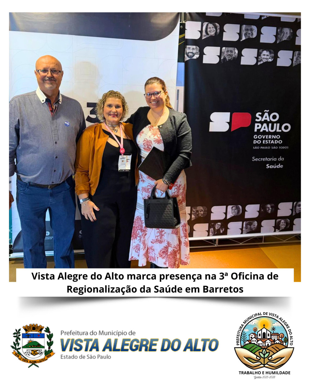 Nos dias 03 e 04 de junho, Vista Alegre do Alto participou ativamente da 3ª Oficina de Regionalização da Saúde, realizada na cidade de Barretos. O evento reuniu lideranças estaduais, municipais e representantes da OPAS/OMS com o objetivo de fortalecer e aprimorar a organização dos serviços de saúde pública na região.