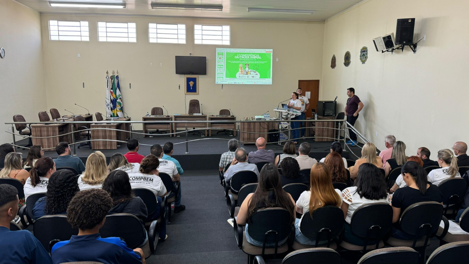 Nesta quarta-feira, 17, Vista Alegre do Alto viveu um momento histórico para a causa animal com a realização da 1ª Conferência da Causa Animal, realizada na Câmara Municipal. O encontro marcou a apresentação oficial da nova legislação que cria o Conselho Municipal de Proteção e Bem-Estar Animal (COMPBEM) e o Fundo Municipal de Proteção Animal (FUNDOBEM), instituídos pela Lei nº 2.788/2025.