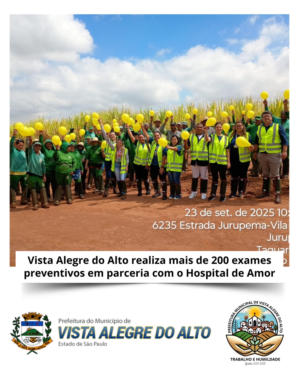 A parceria com o Hospital de Amor reafirma o compromisso da Prefeitura de Vista Alegre do Alto em garantir atenção integral à saúde da população, com campanhas que aproximam os serviços médicos da comunidade.