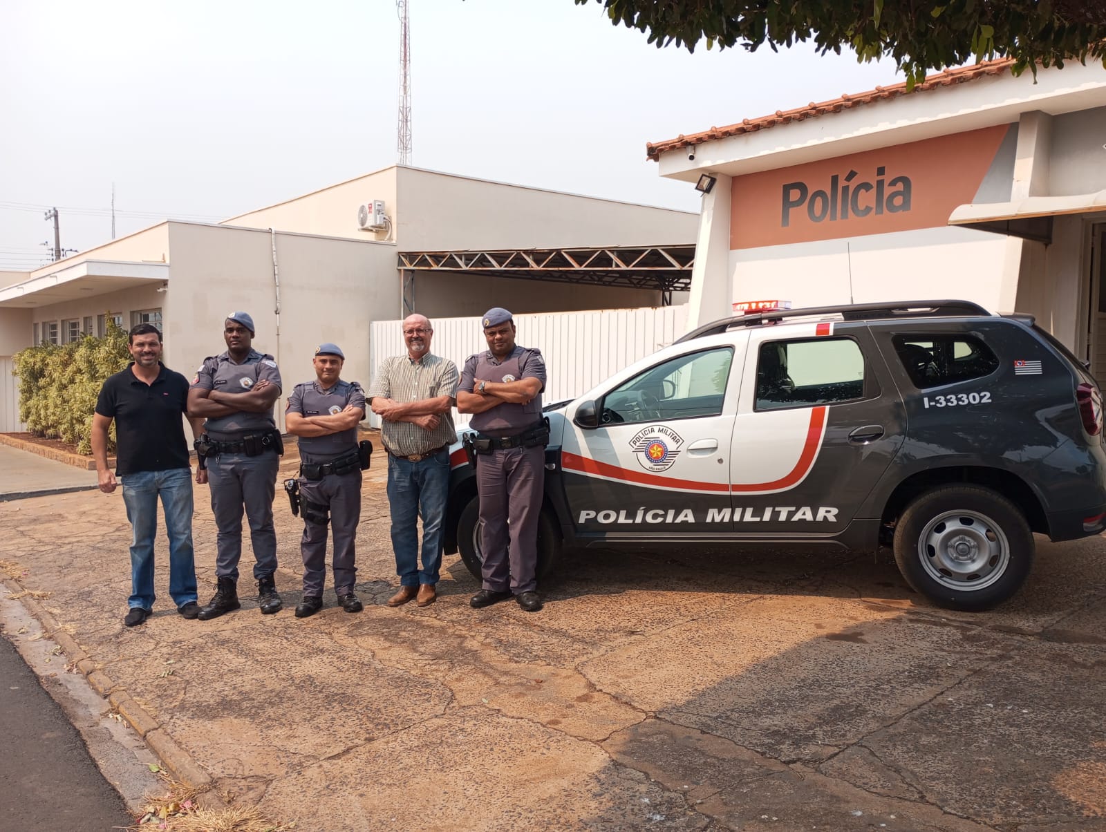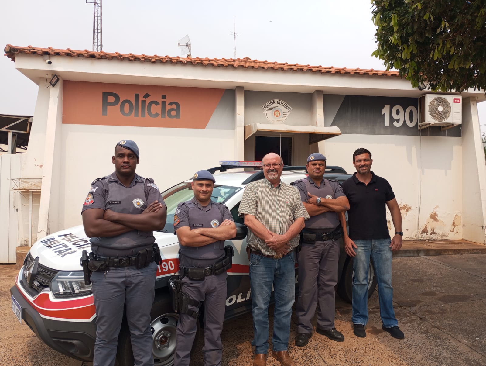 Durante a chegada da viatura, estiveram presentes o prefeito Nelson Rozani, o vereador Alonso, além do Sargento César, do Cabo Tiago e do Soldado Justino, representando a equipe da Polícia Militar que atuará com o novo veículo.