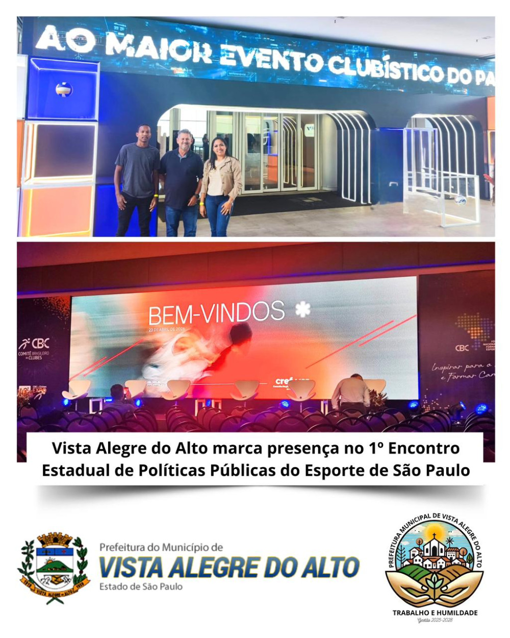 24/04/2026 - Vista Alegre do Alto marca presença no 1º Encontro Estadual de Políticas Públicas do Esporte de São Paulo.