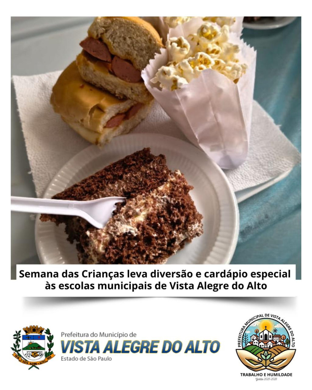 Semana das Crianças leva diversão e cardápio especial às escolas municipais de Vista Alegre do Alto.