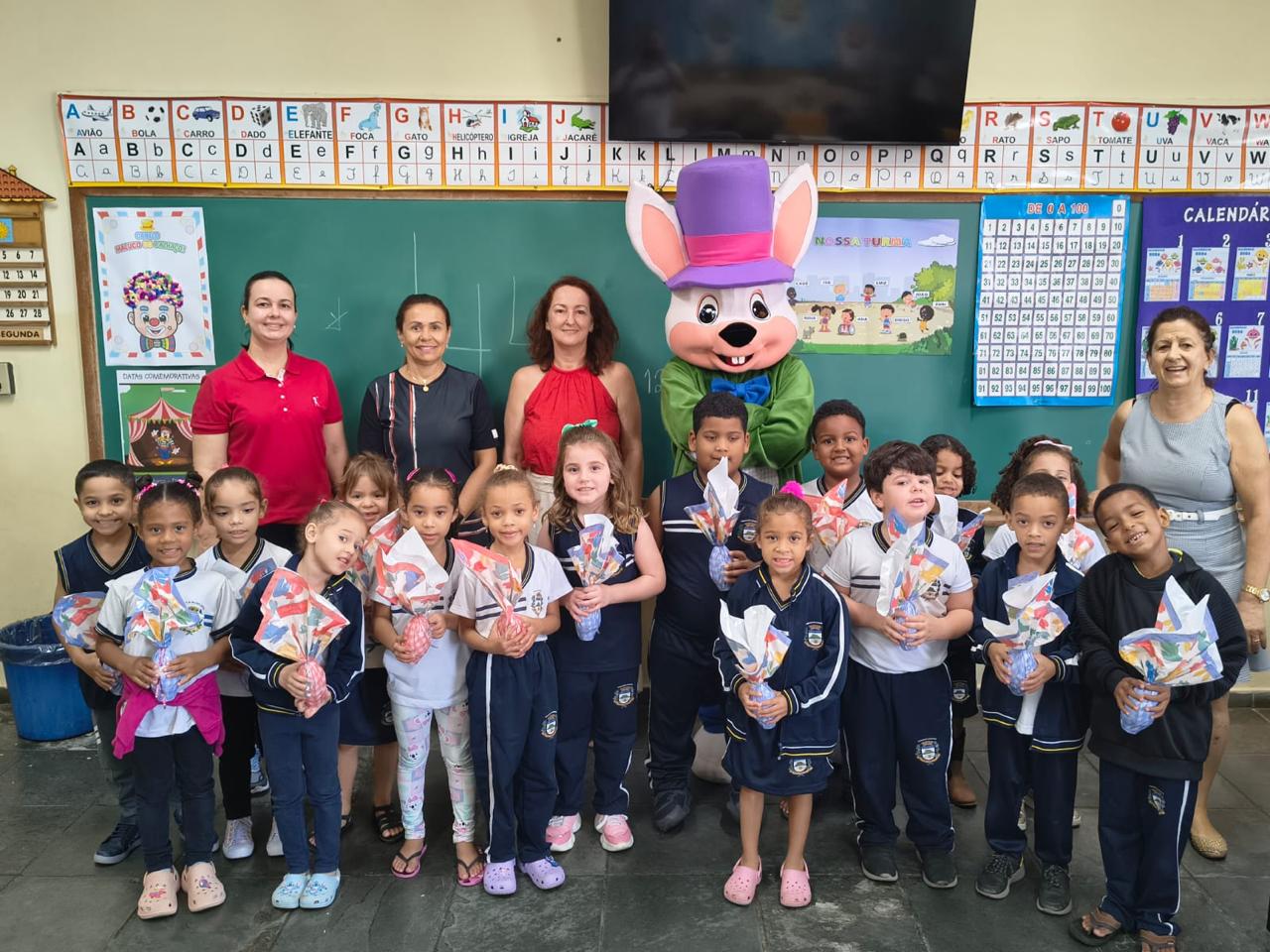 A ação aconteceu nas unidades escolares EMEIEF Irineu Julião, EMEI Aurélio Bettini e na Creche Associação Coração de Jesus, reunindo estudantes, professores e equipes escolares em um clima de celebração.
