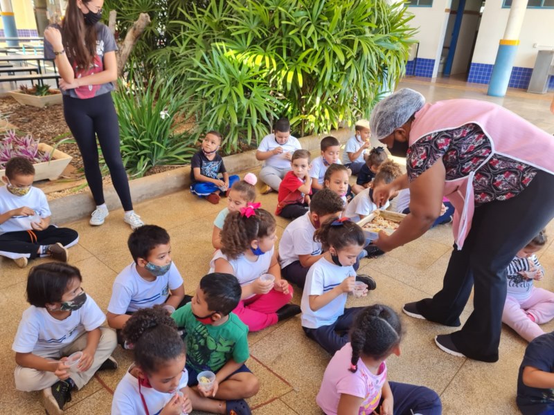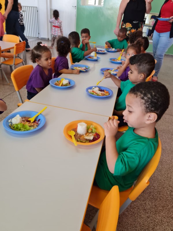 Ao final, foi observado que houve uma aceitação pelas crianças de mais de 90% dos alimentos servidos, confirmado o sucesso da atividade.