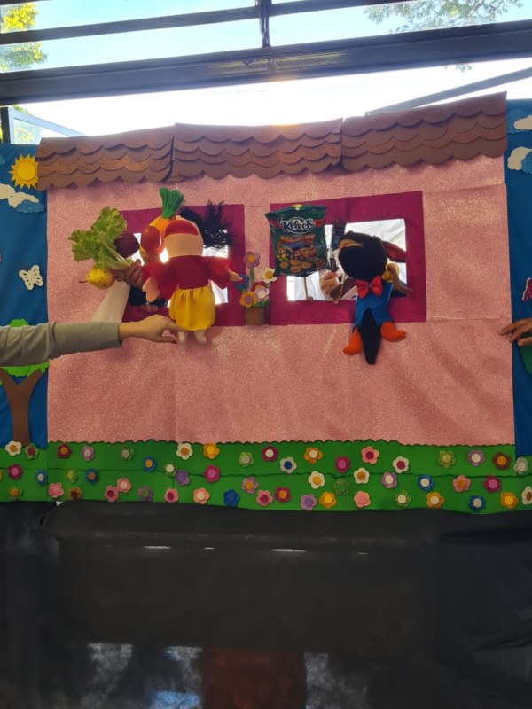 Para incentivar o consumo de alimentos saudáveis, o Setor de Nutrição do Município de Vista Alegre do Alto – SP, representado pela nutricionista Maria Fernanda Cortezzi Cardoso, a estagiária Gabrieli Angeli Moraes Nunes e a auxiliar de nutrição Joanisia Alves Sousa Carvalho, realizou uma atividade de Educação Alimentar e Nutricional para os alunos da Educação Infantil e creche, com a apresentação de um teatro de fantoches contando a história de Chapeuzinho Vermelho adaptada ao contexto alimentar. Tal atividade, contou também com a colaboração da equipe da cozinha, das monitoras da Escola Aurélio Bettini, com a nutricionista Mariana Grassetti Gava e toda equipe da creche Associação Coração de Jesus.