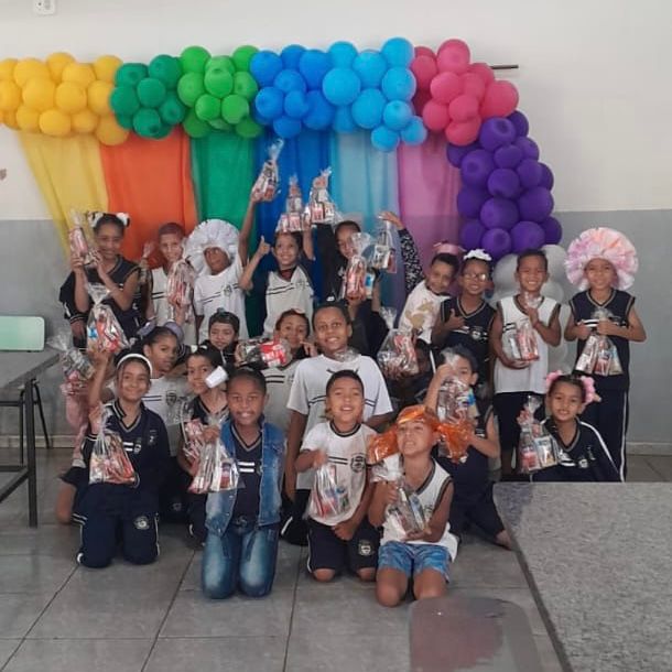 Para completar a comemoração, cada aluno recebeu um kit de guloseimas, preparado com muito carinho.