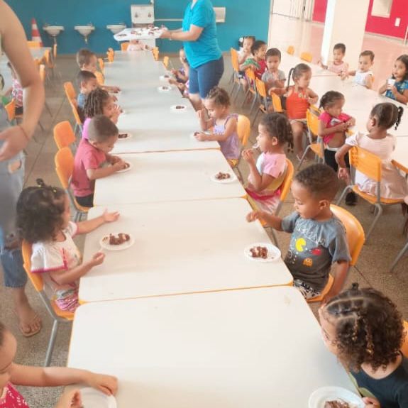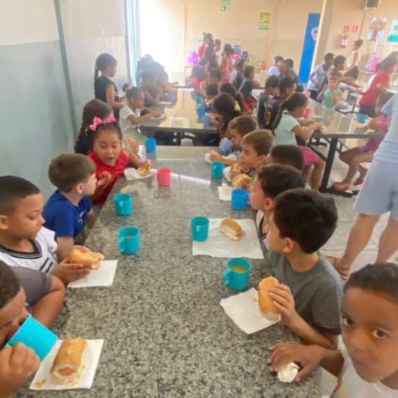 Durante a semana, o cardápio contou com refeições balanceadas e nutritivas como de costume, acompanhadas de novidades especialmente pensadas para a data. Na Escola Irineu Julião as crianças saborearam iogurte de morango e lanche com frios, escondidinho de carne moída, gelatina, pipoca salgada, cachorro quente e um delicioso bolo de festa recheado. Já nas “creches” (Associação Coração de Jesus, EMEI Aurélio Bettini e EMEC Prof. Sidney G. F. Dorigan) as crianças puderam deliciar –se com iogurte de morango, escondidinho de carne moída, frutas diferenciadas como morango e uva, salgadinhos (mini pastel e mini coxinha), cachorro quente e bolo de festa recheado.